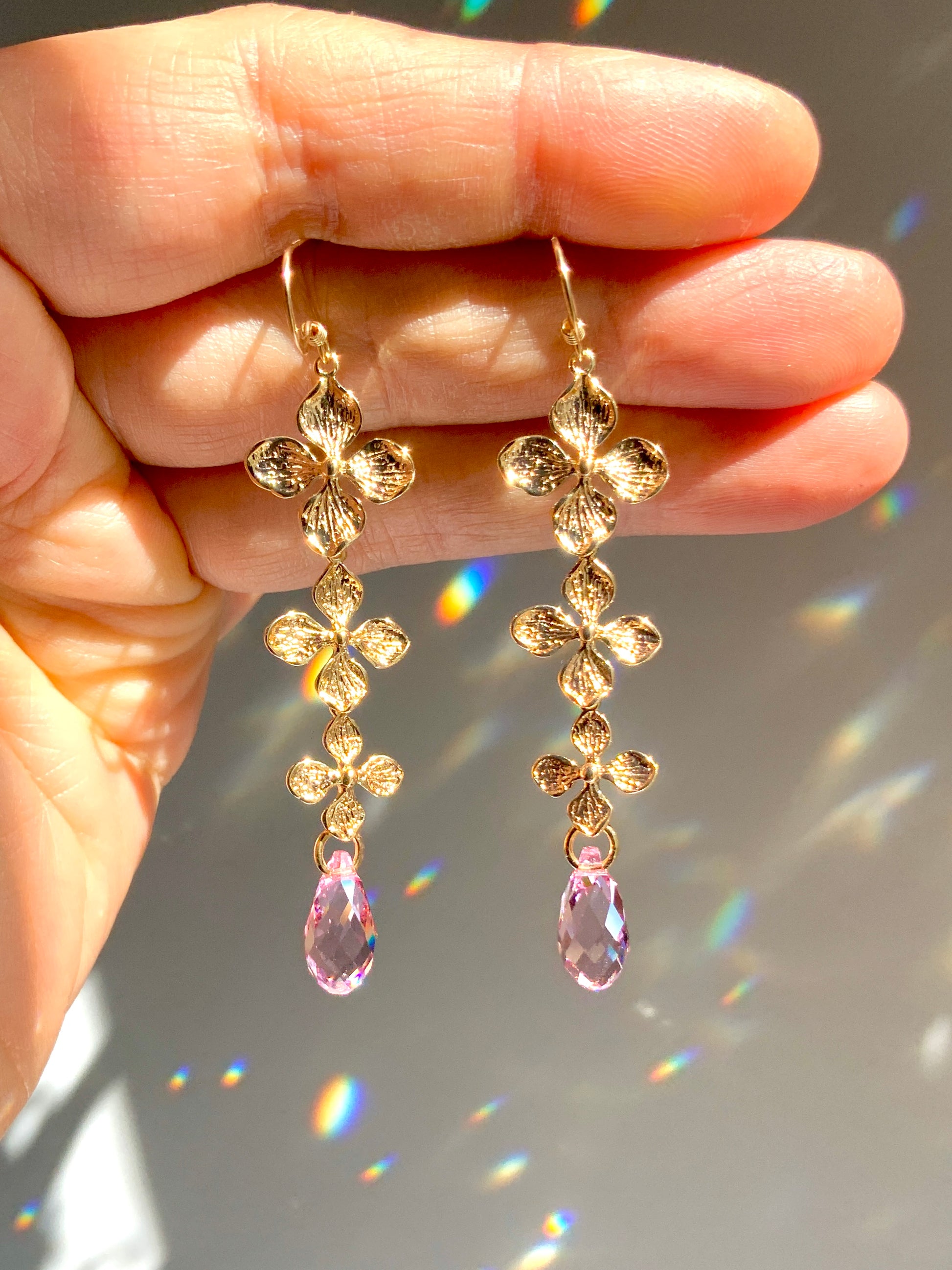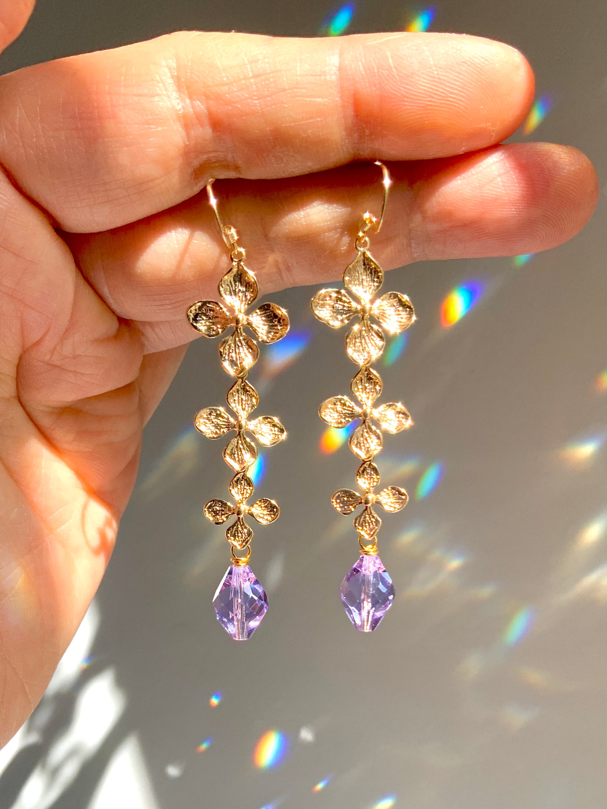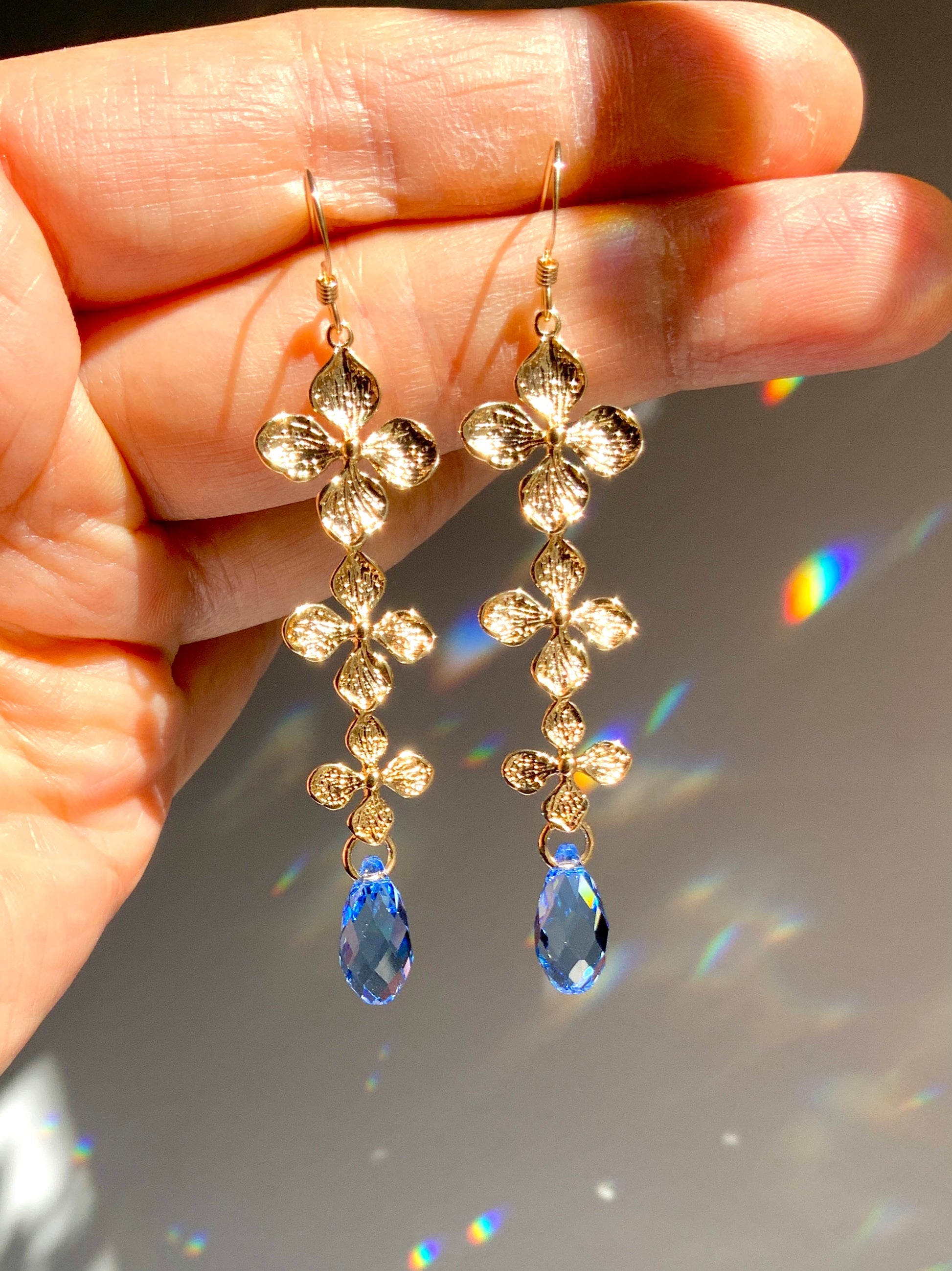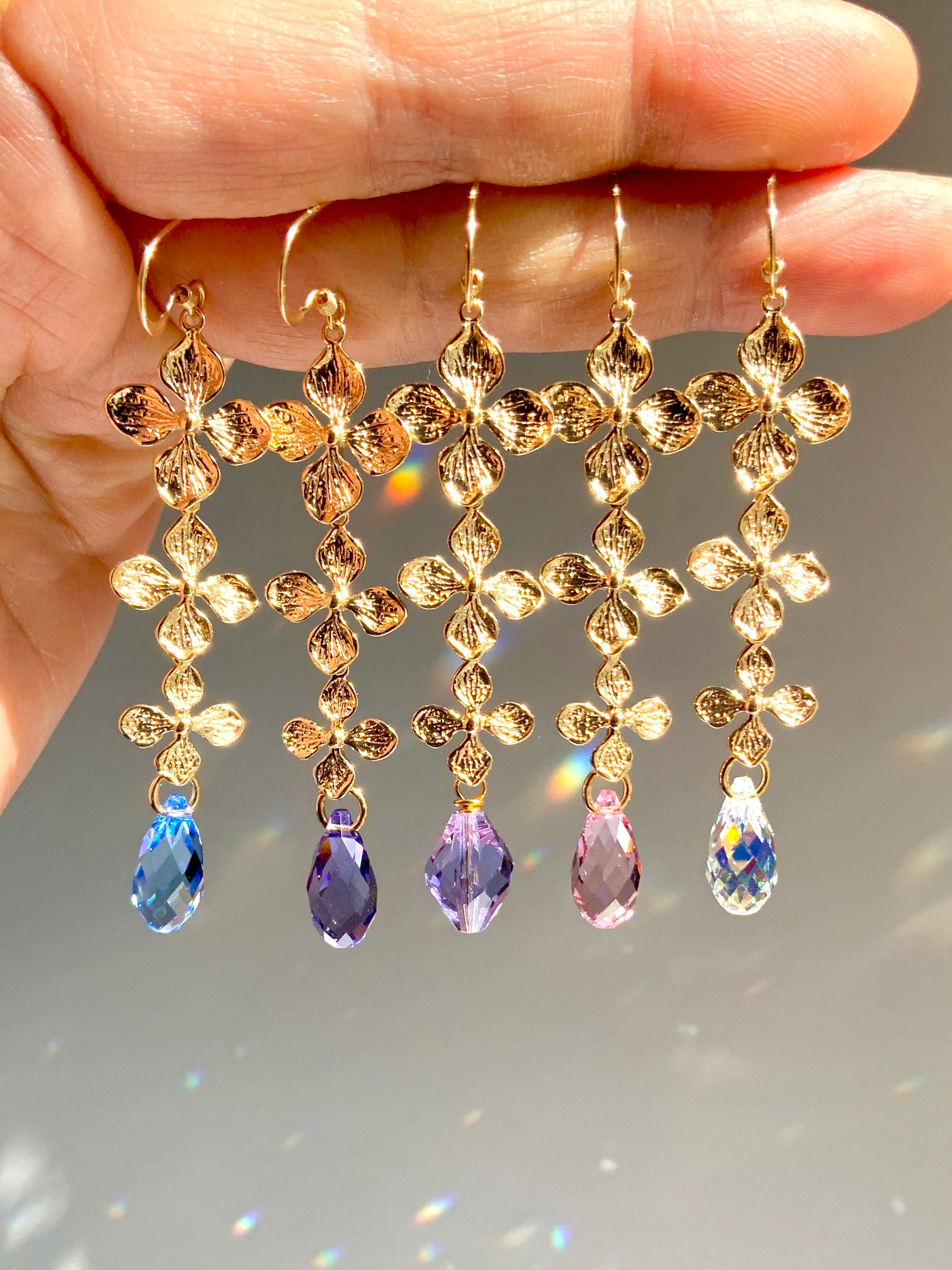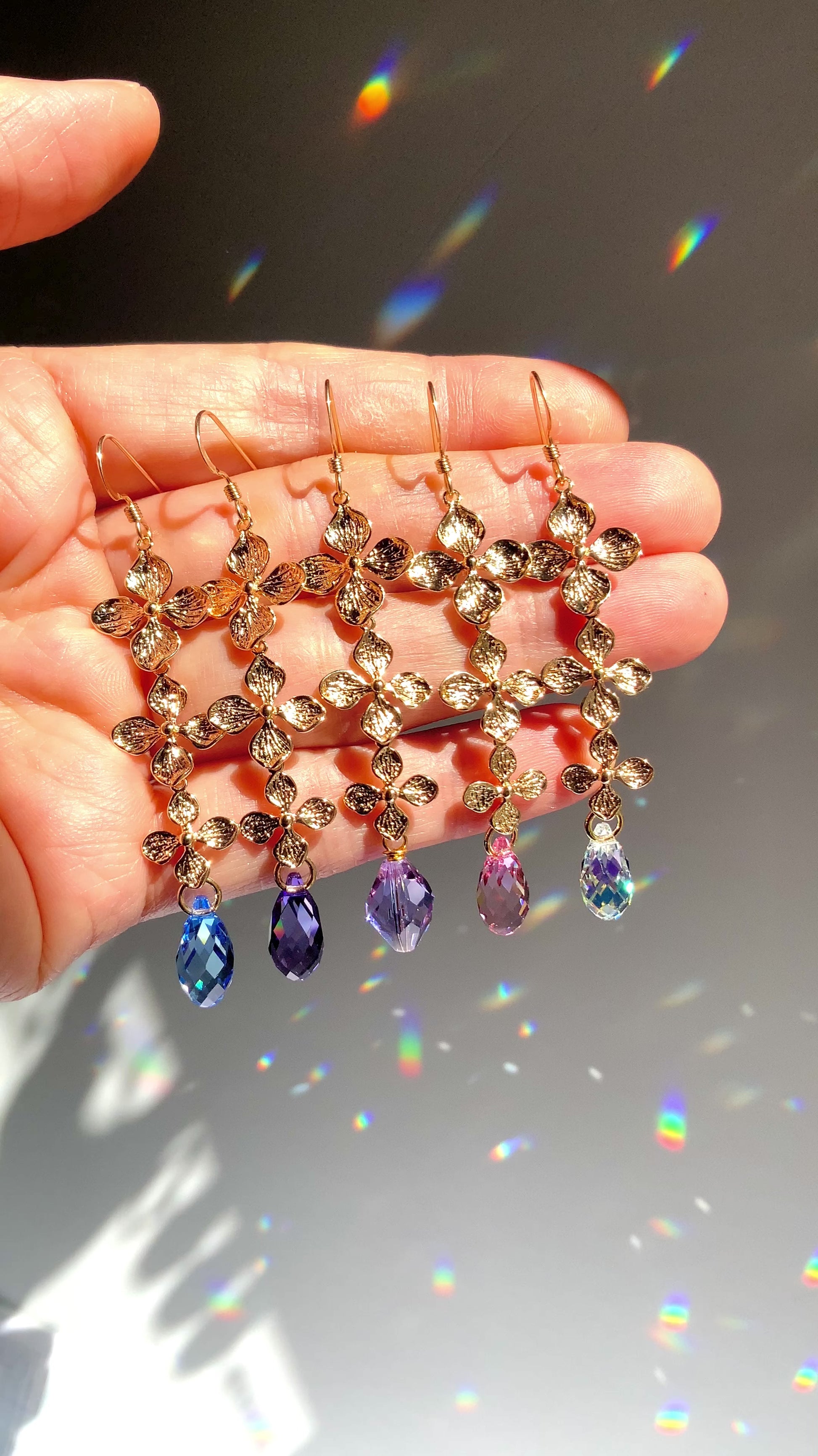 Crystal Prism Hydrangea Earrings~ Choose Your Color, 18k Gold-Plated Flower Suncatcher Jewelry