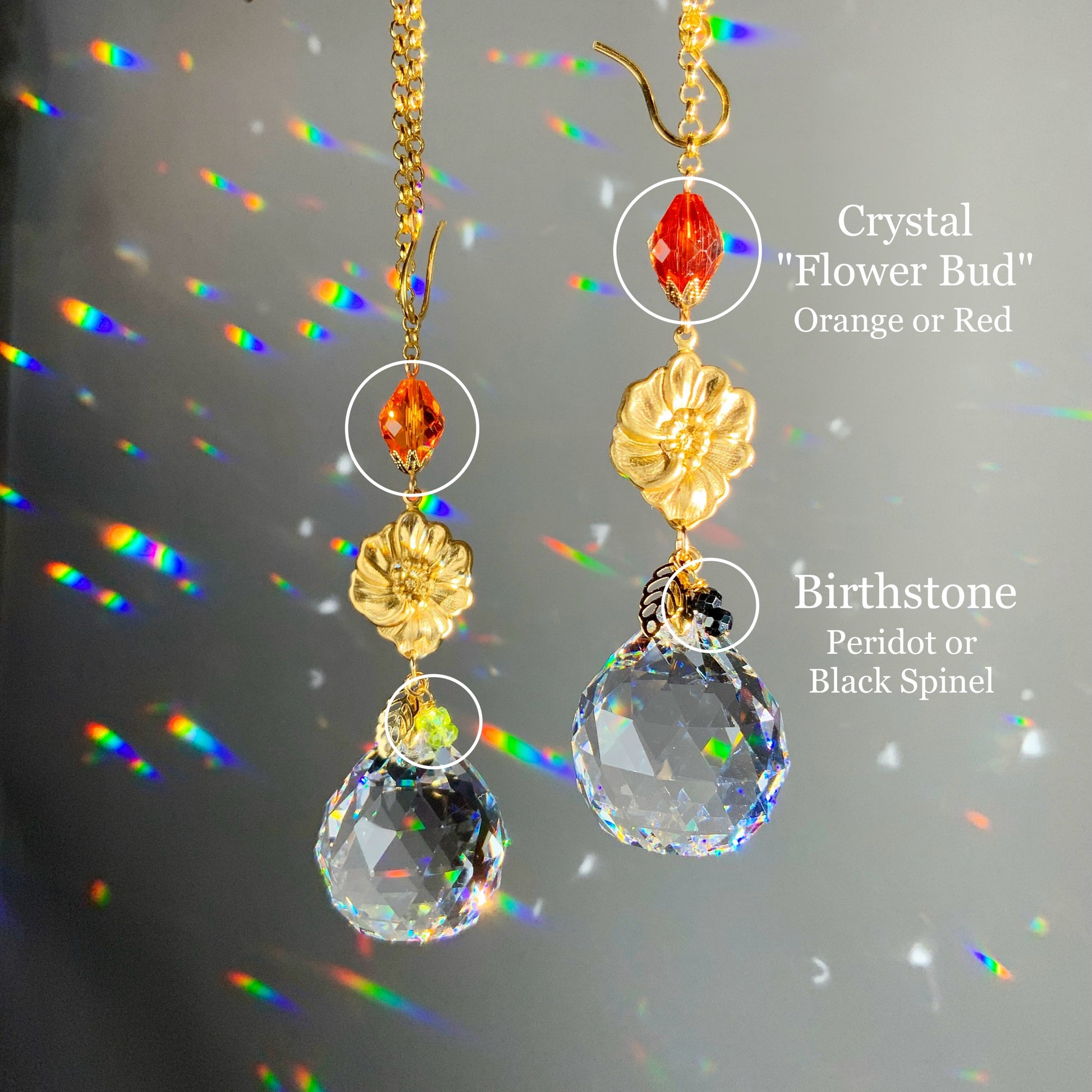 Birthflower Series- August Poppy, Peridot Crystal Prism Car Charm, Choose your Color and Birthstone