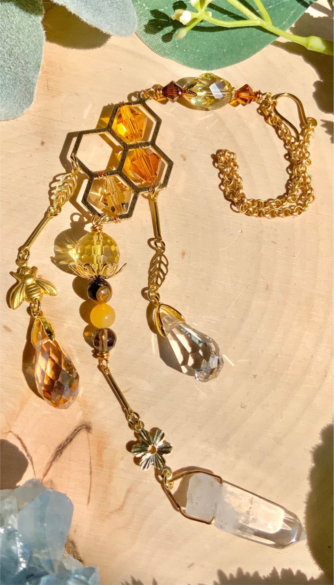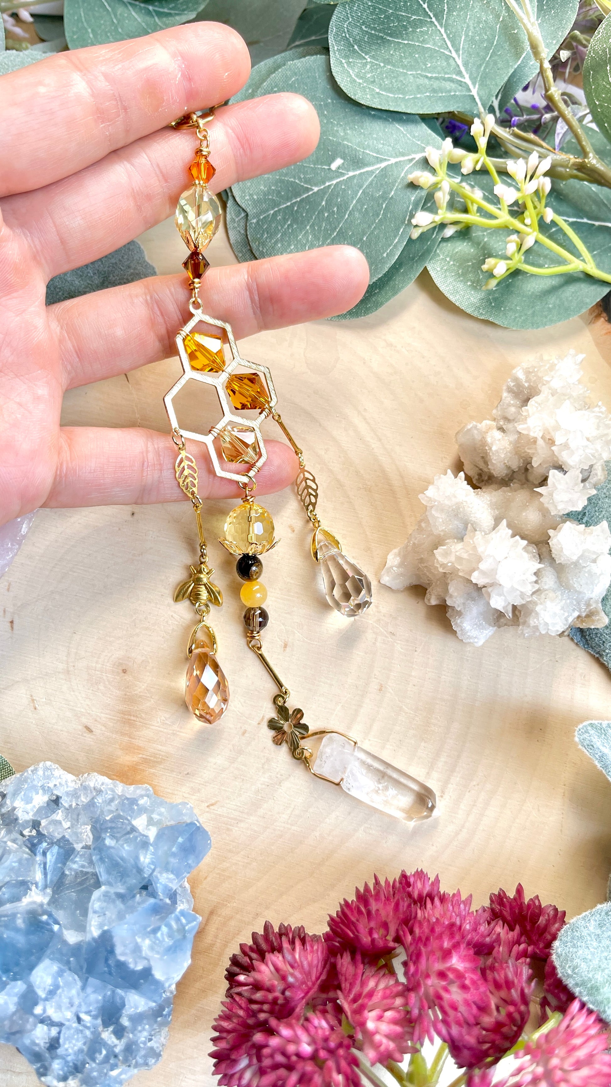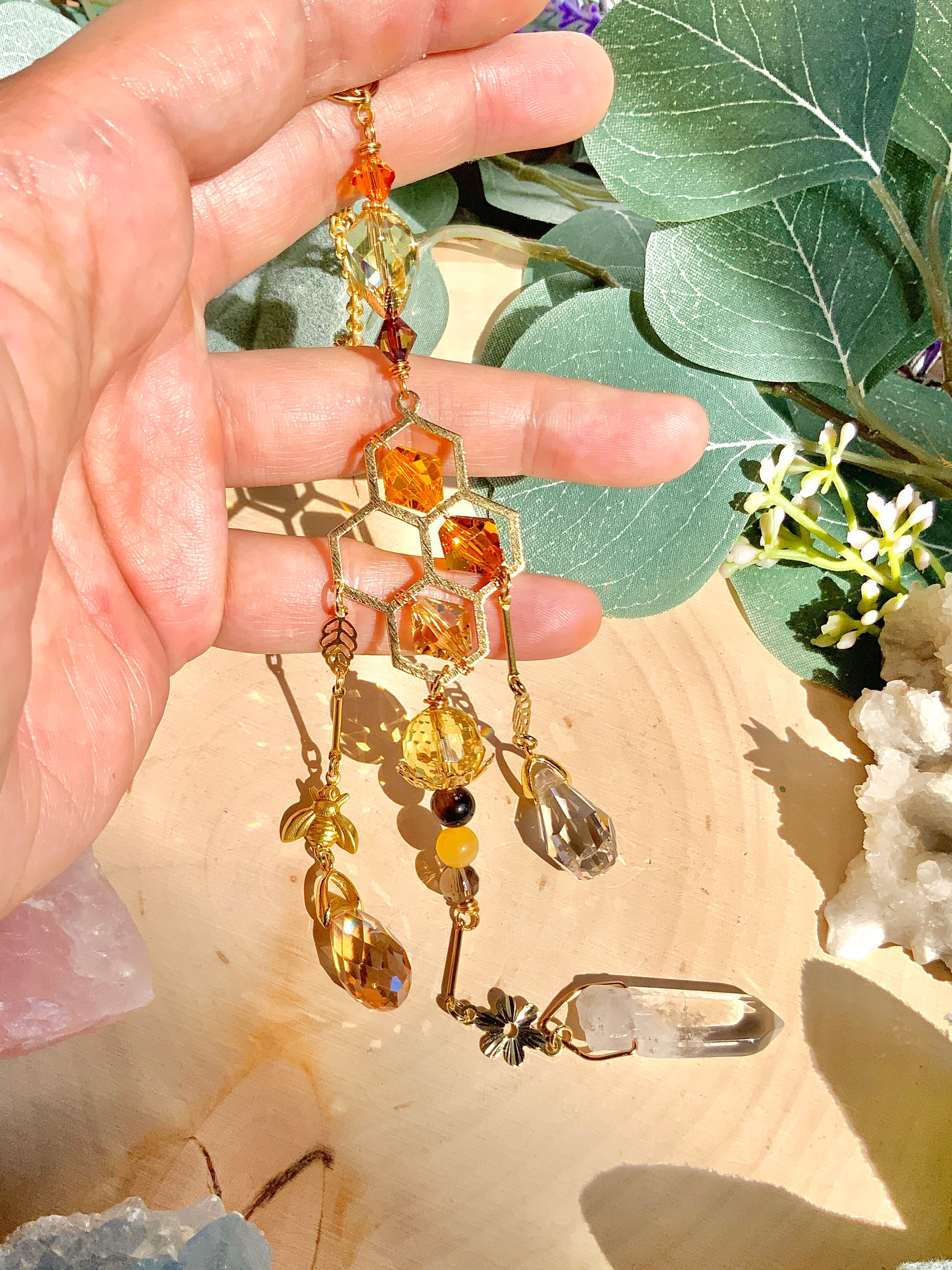 Our newest gemstone car charm is chock full of busy bees and glittering honeycomb dripping with honey! 🧡🐝🍯✨
