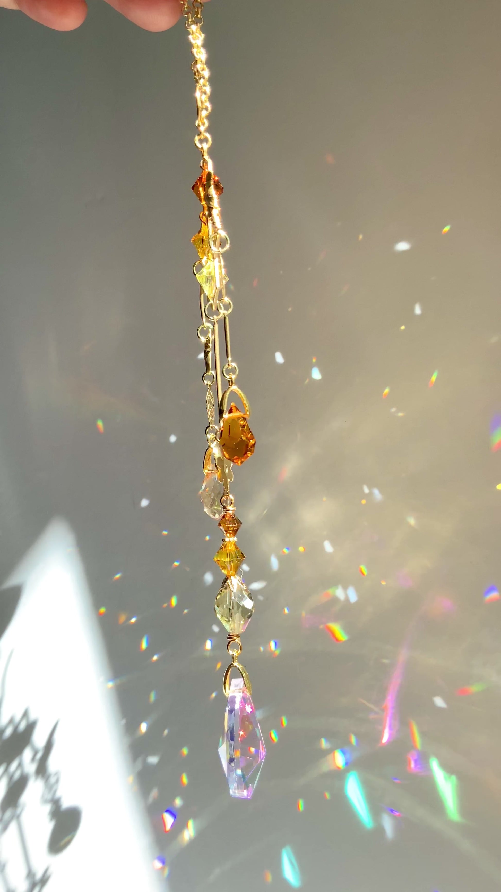 ✨ Featuring 5 shades of yellow/Amber, with a rainbow maker prism focal drop, for a total of 9 sparkling crystals! ✨
