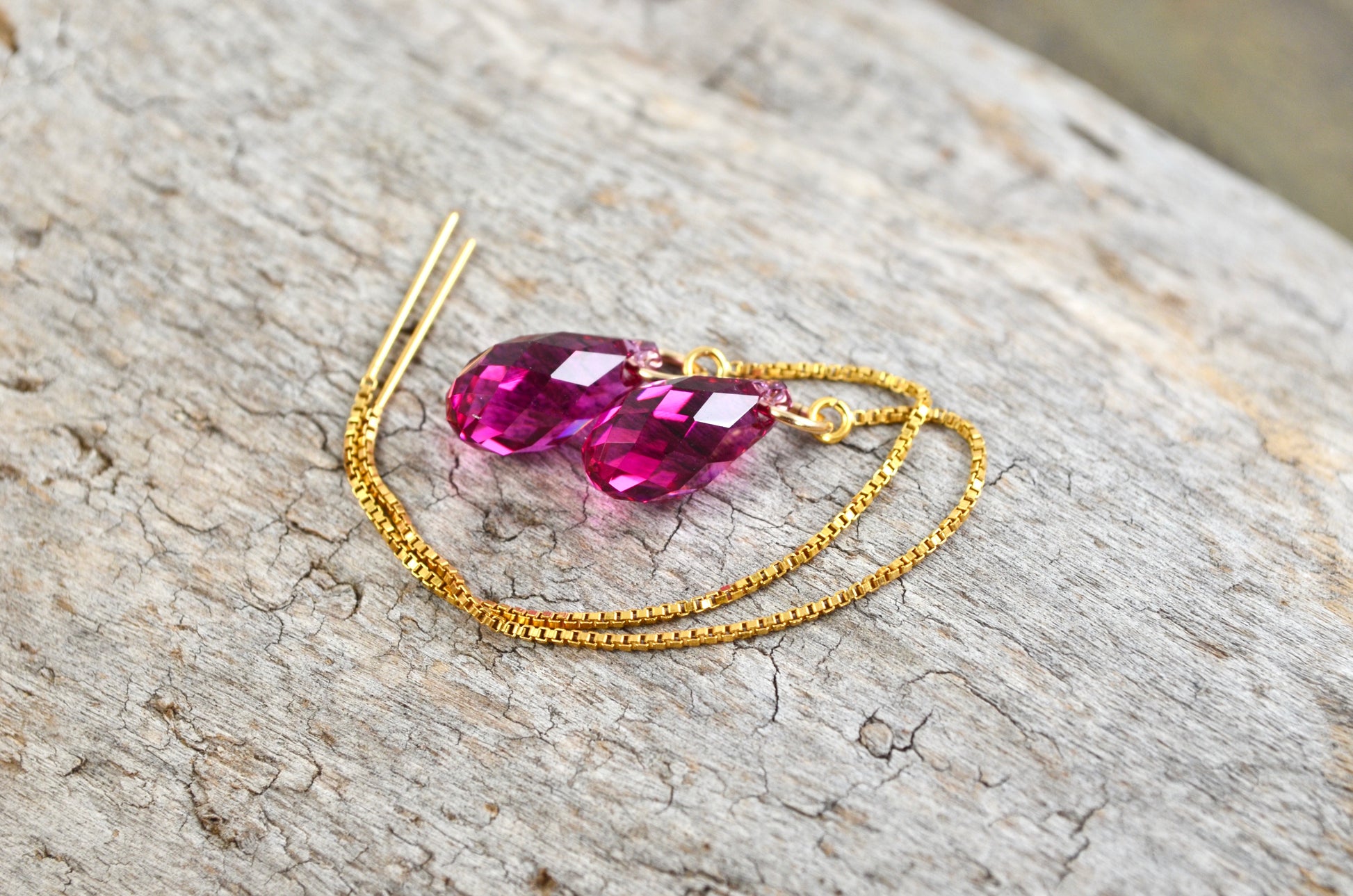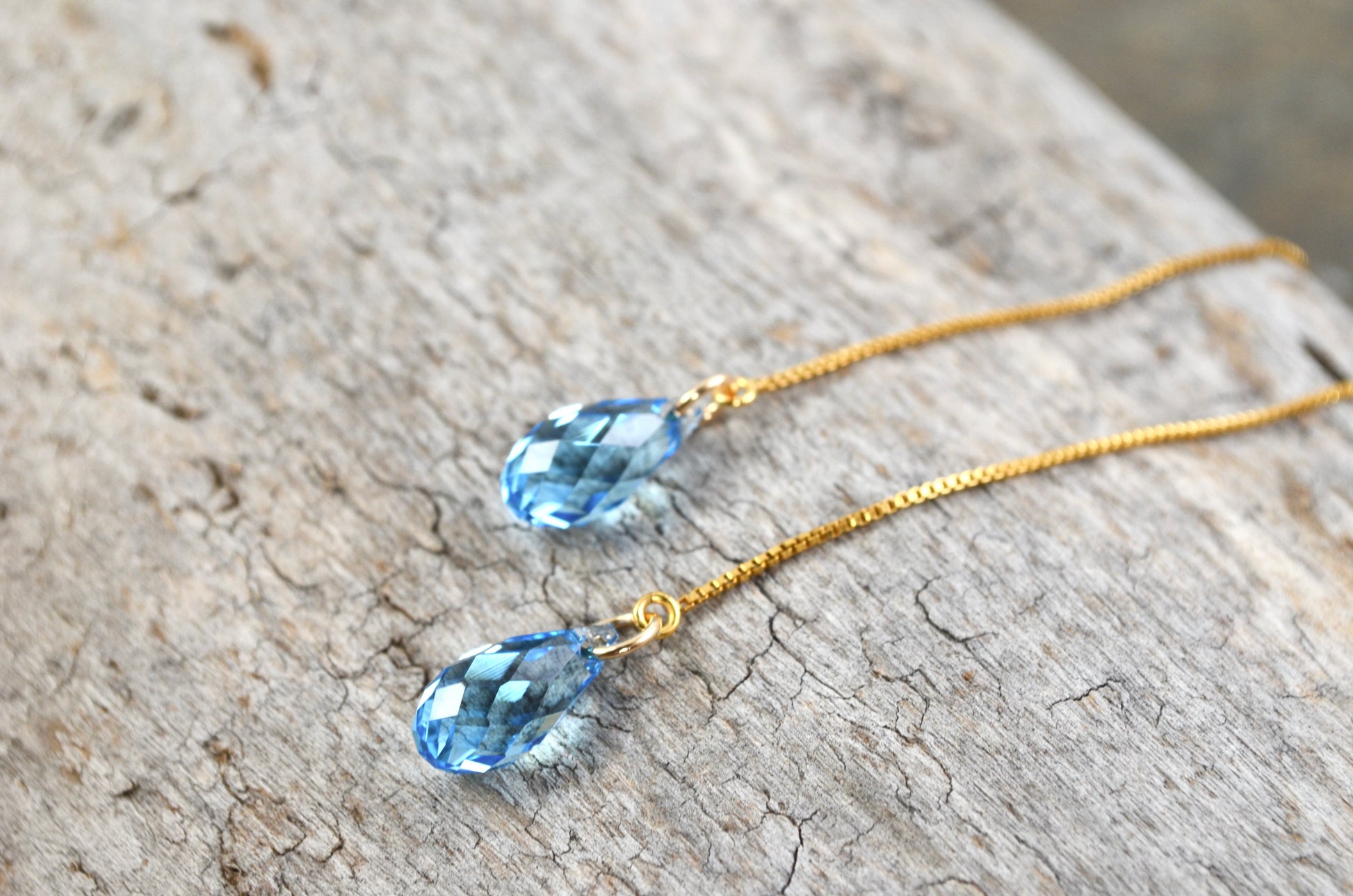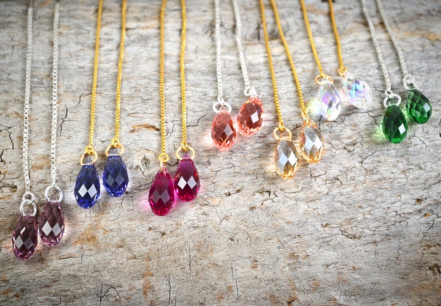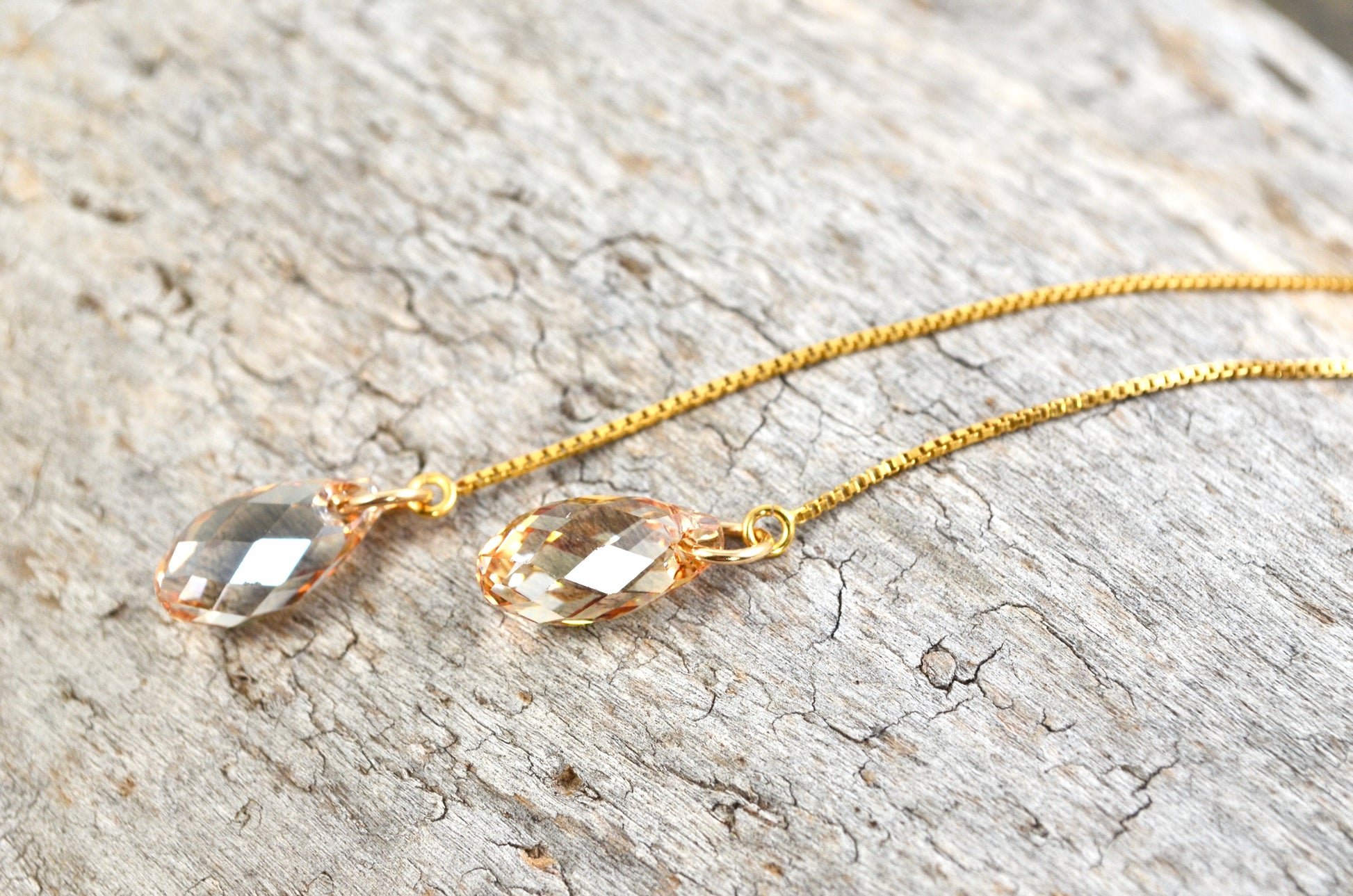 Long Crystal Ear Threaders in Sterling Silver or 14k Gold Filled; Choose your color