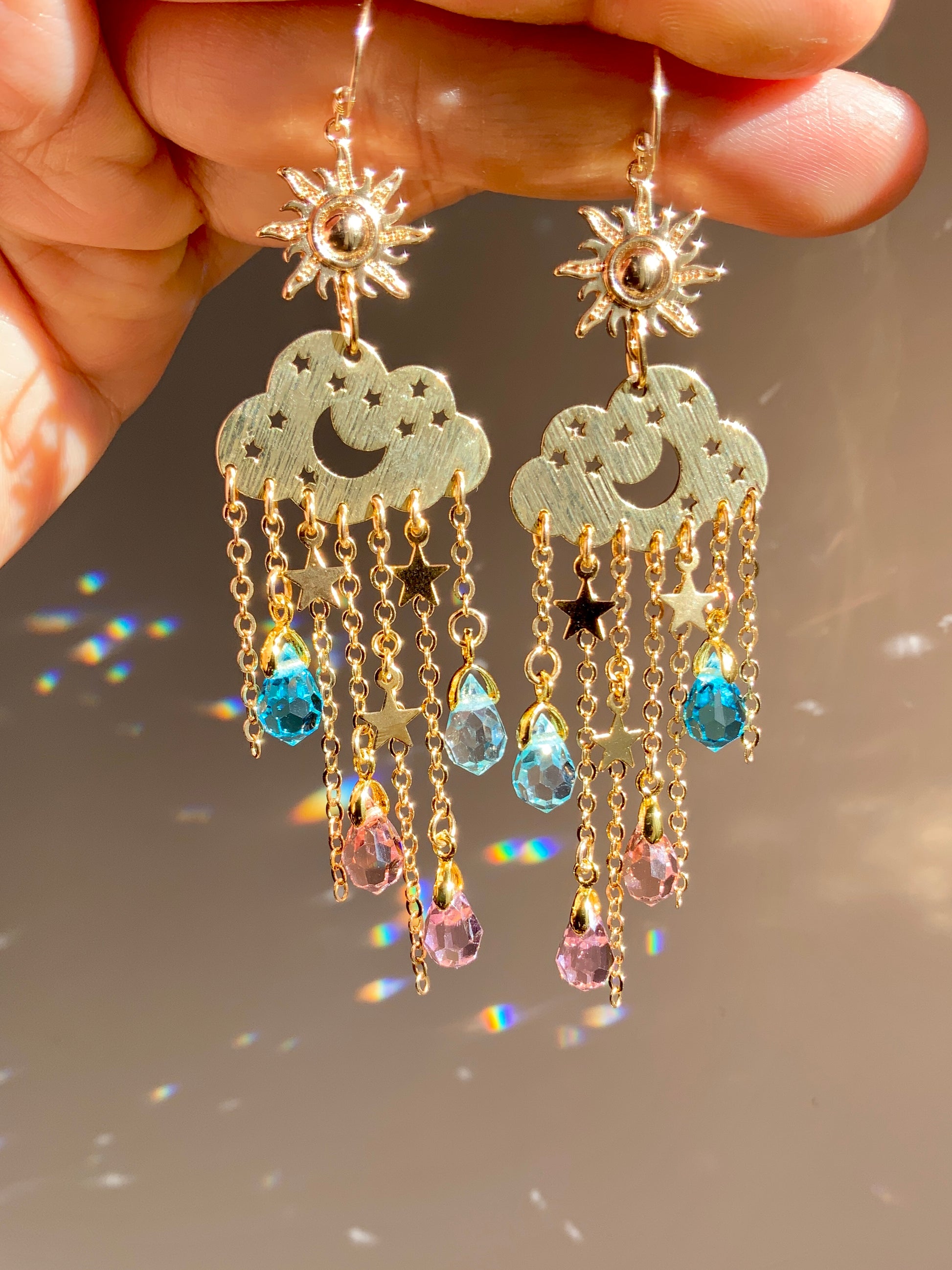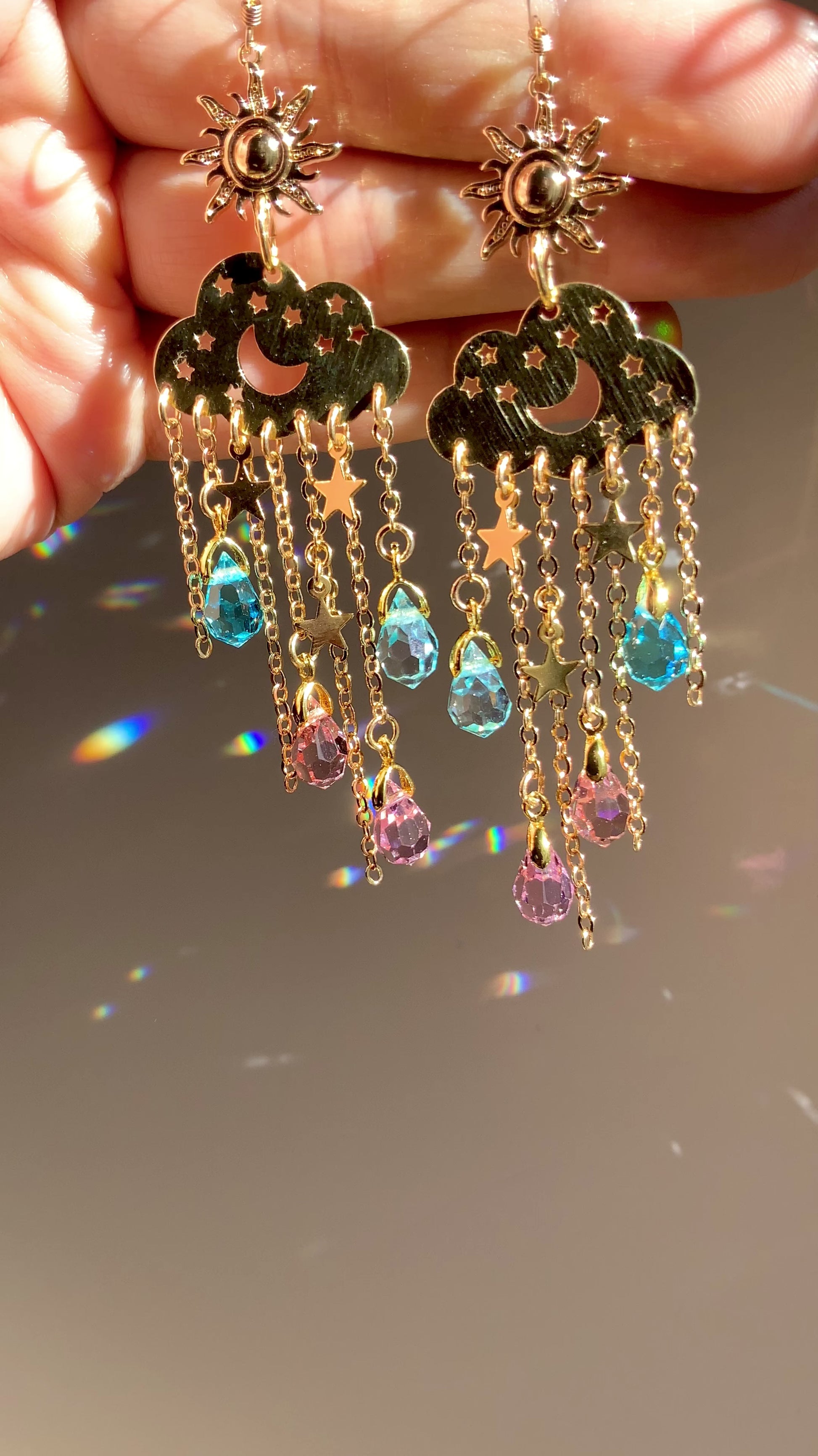 Ombré Sunrise Crystal Rain Cloud earrings~ 18k Gold-Plated Sun Moon Celestial prism Suncatcher jewelry