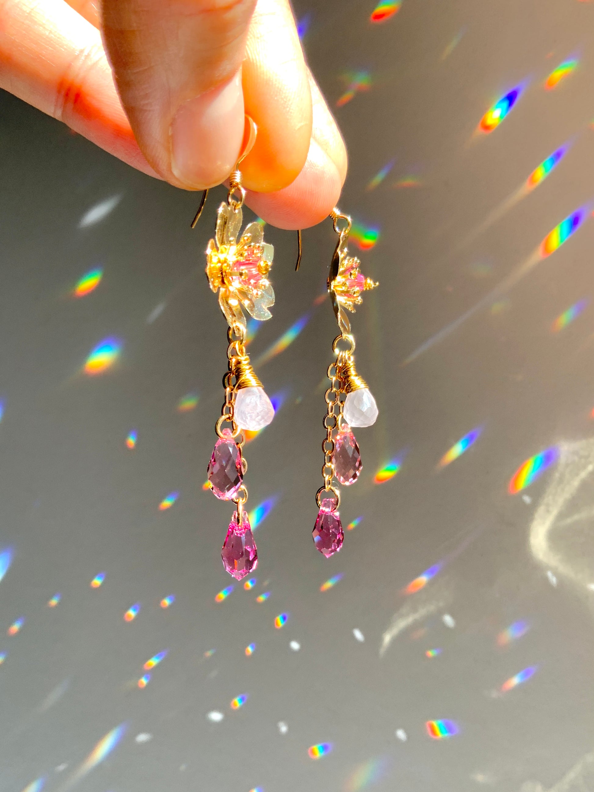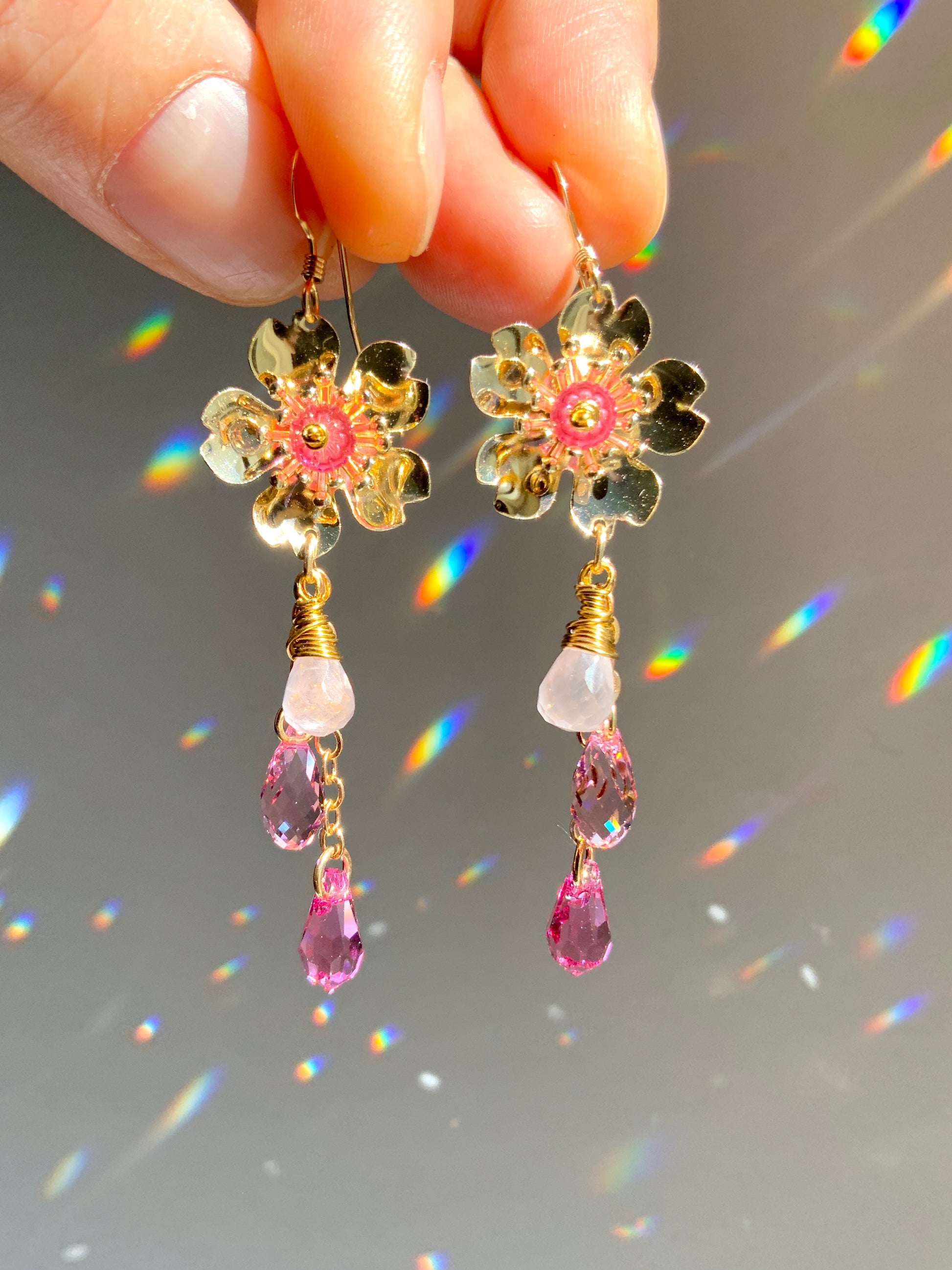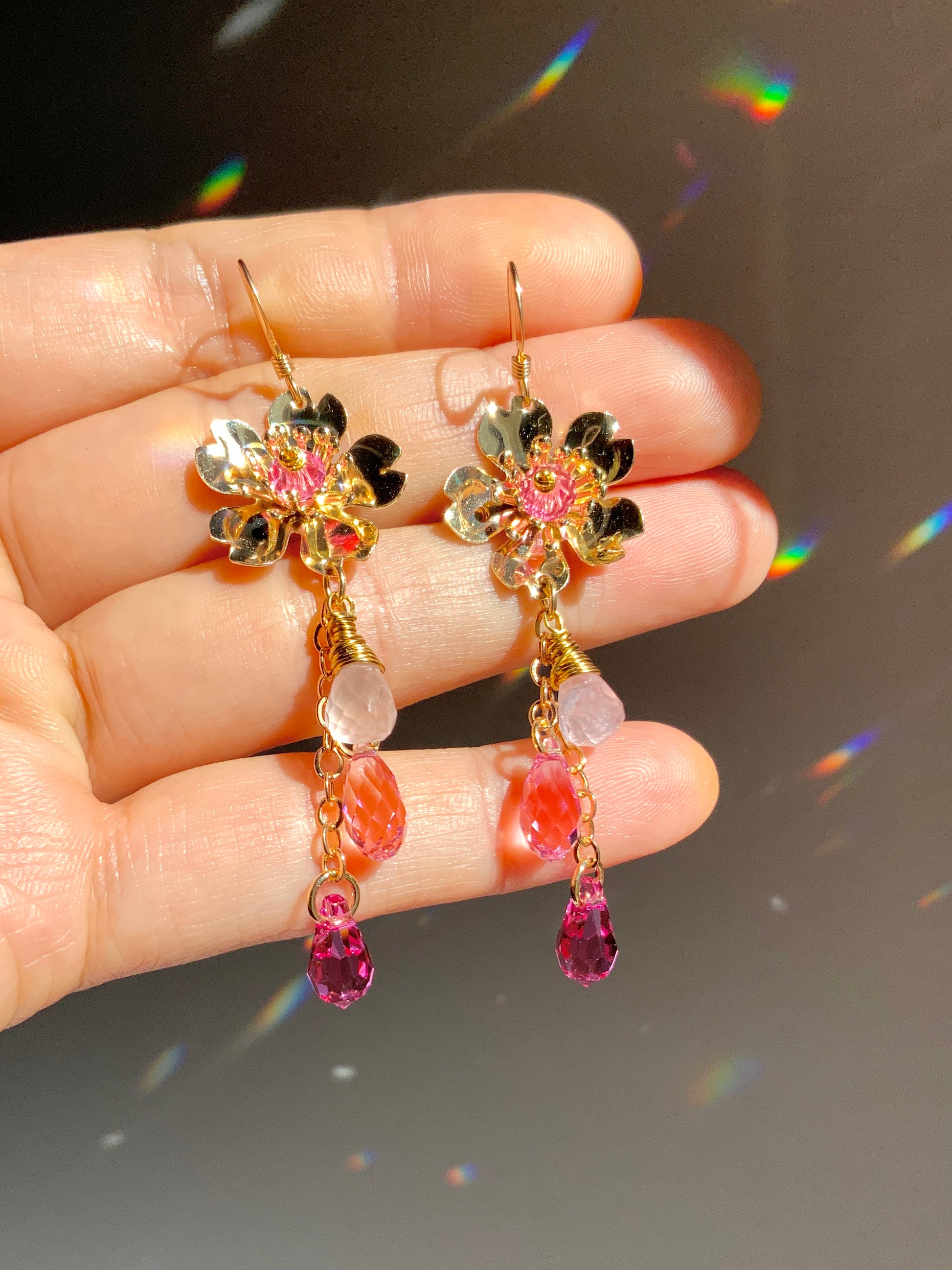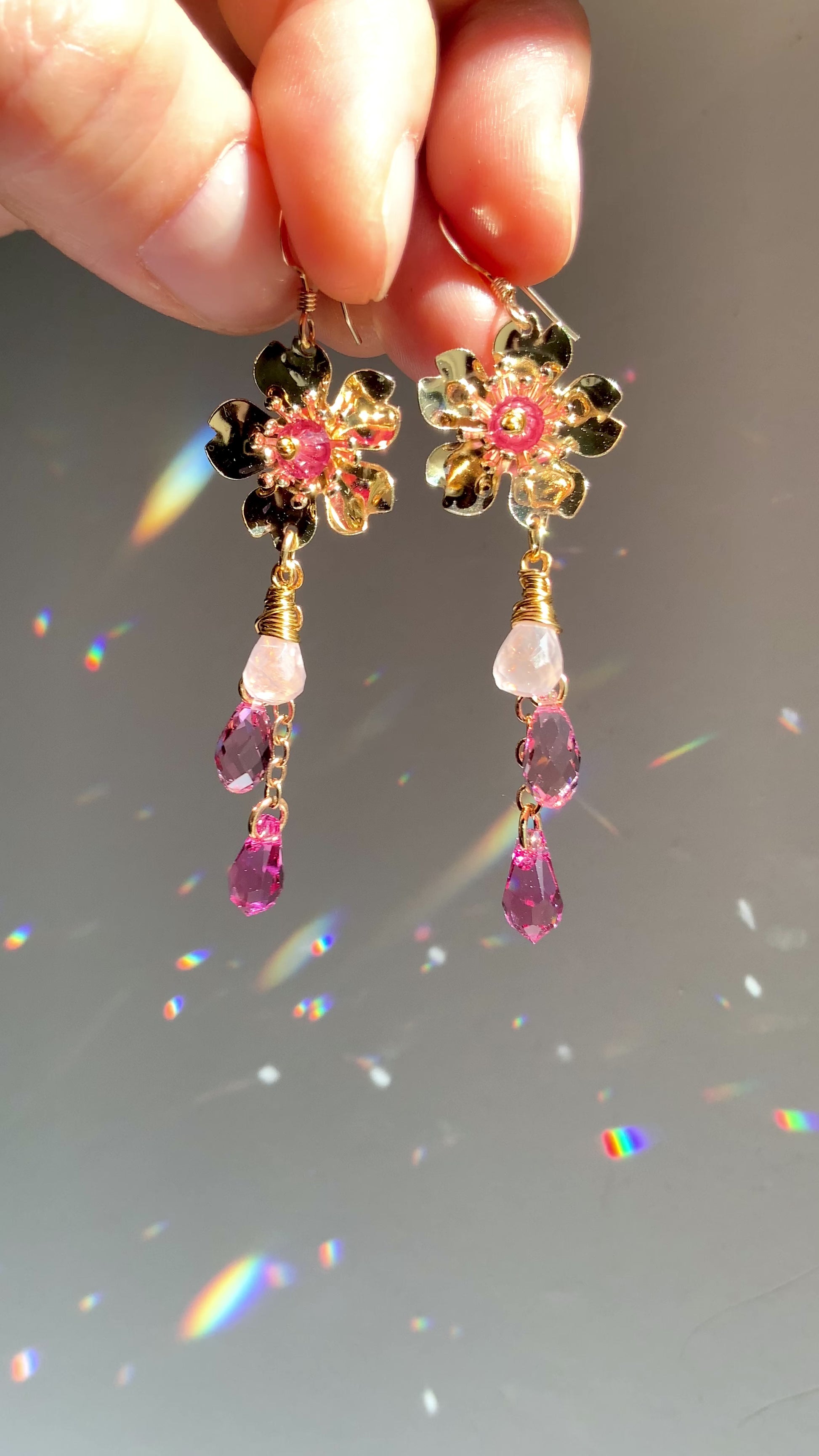 Rose Quartz Cherry Blossom Earrings~ Ombré Pink 18k Gold-Plated Sakura Crystal jewelry