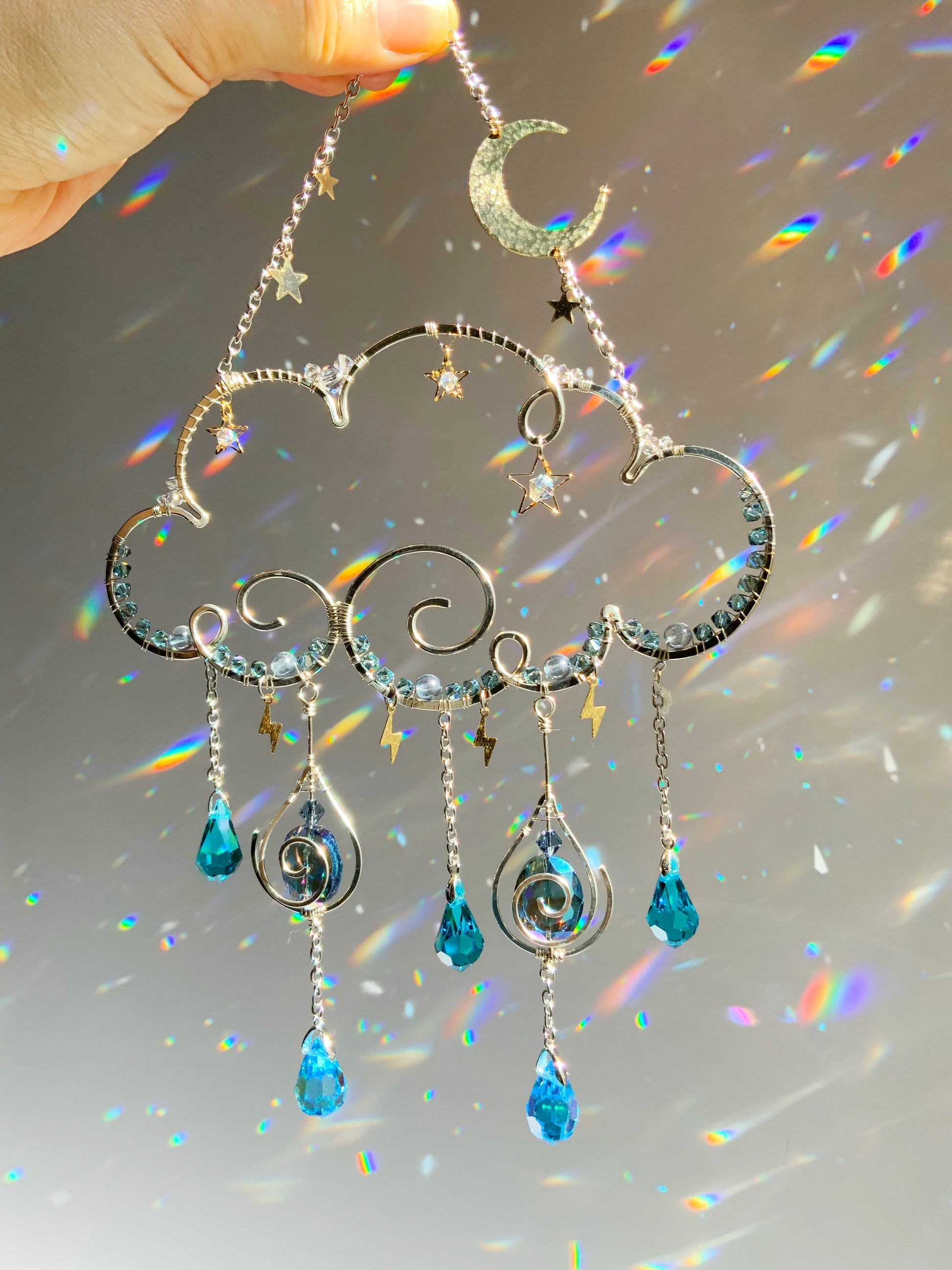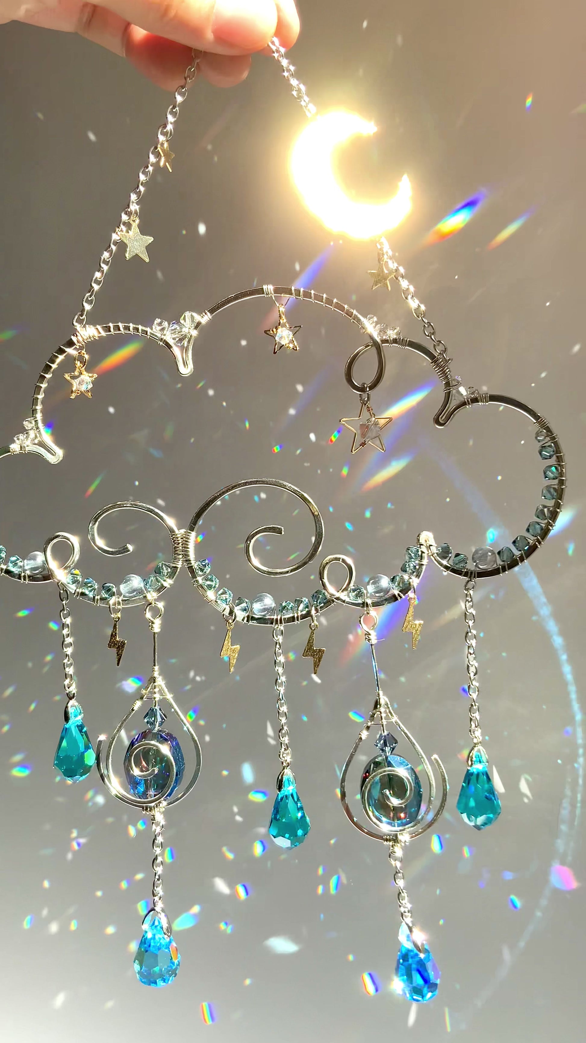 I promise you will brighten your every day, rain or shine, just to hang this raincloud suncatcher in your window or anywhere in your home. Indoors, direct sunlight dances through the wire wrapped crystals to dazzle your walls with tiny rainbows. So incredibly sparkly! 😍 Fantastic as gifts or just as a treat for yourself so you can smile every time you glance at it sparkling in the sun. ☺️