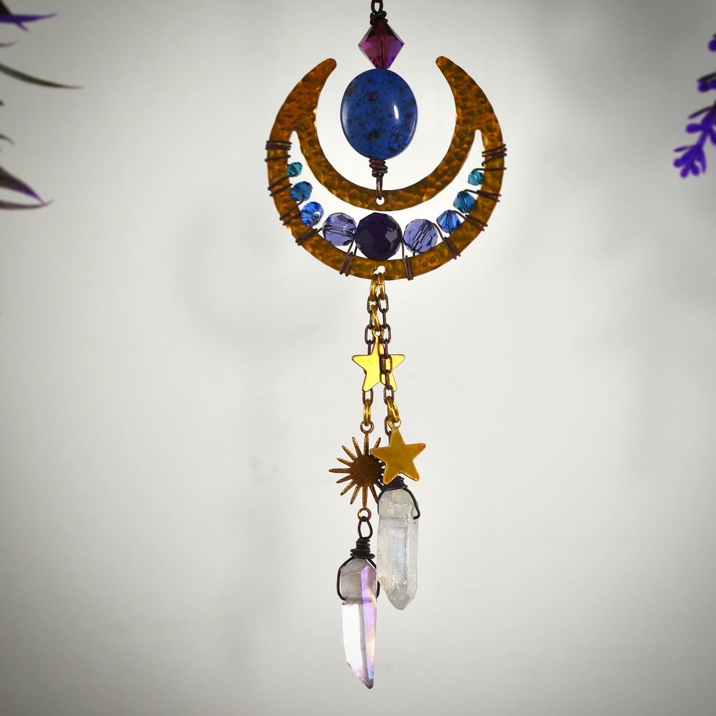 Sun Moon and Stars Rearview Mirror Car Charm, dark witchy decor Crystal prism car accessories