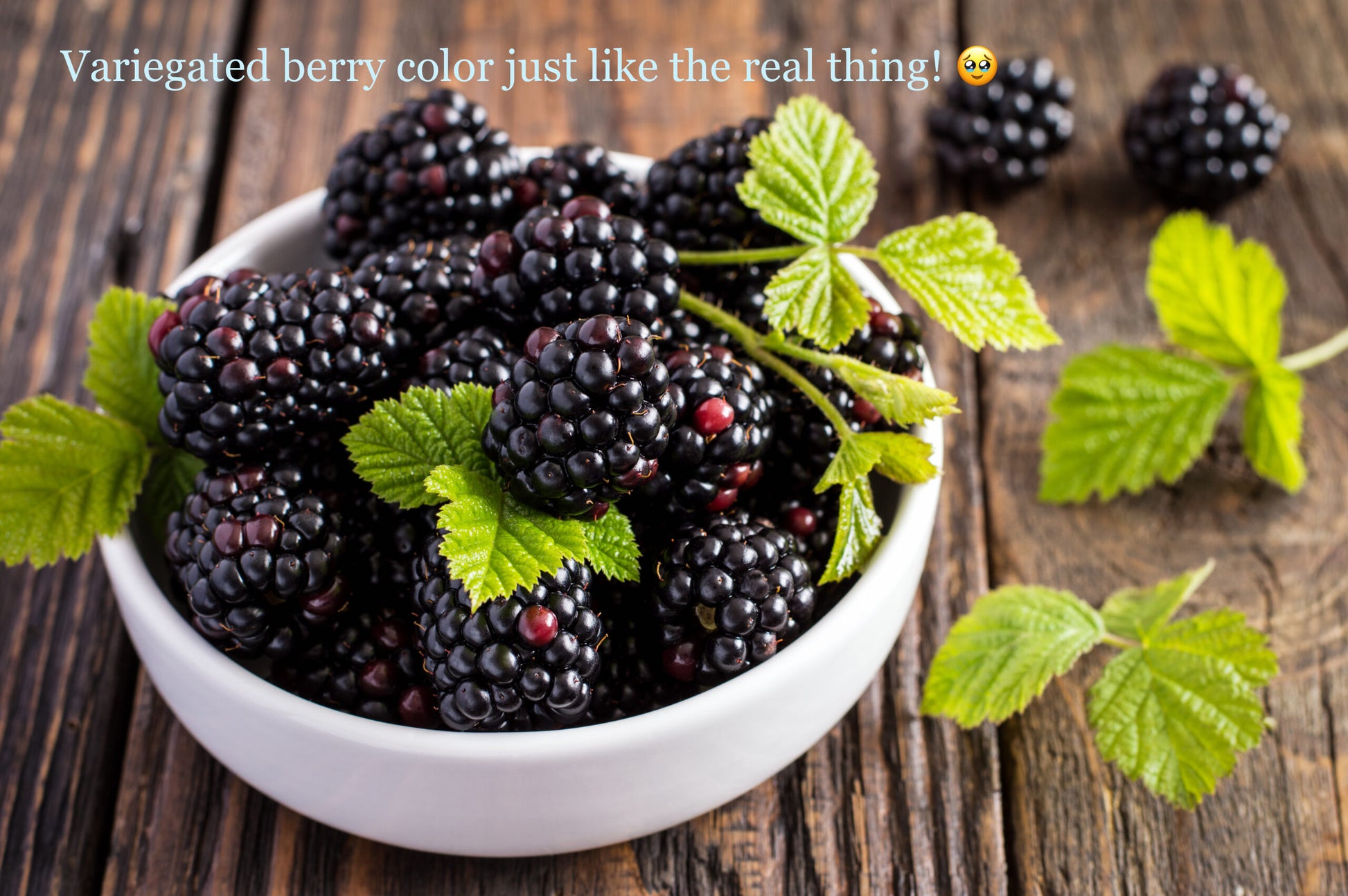 The blackberries boast a beautiful, varied berry color that ranges between a deep plum purple, purple-black to a blood red, just like real blackberries! 🥹