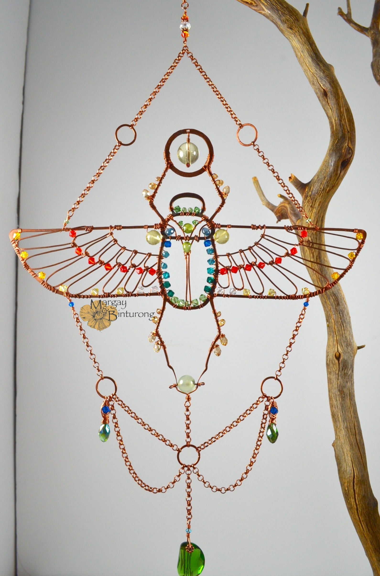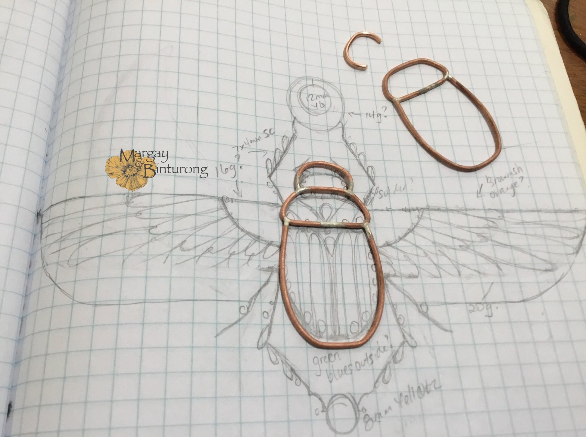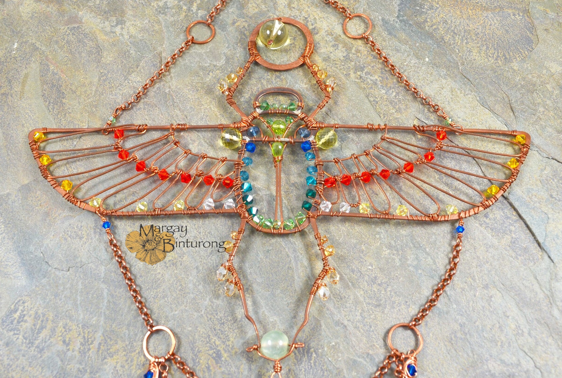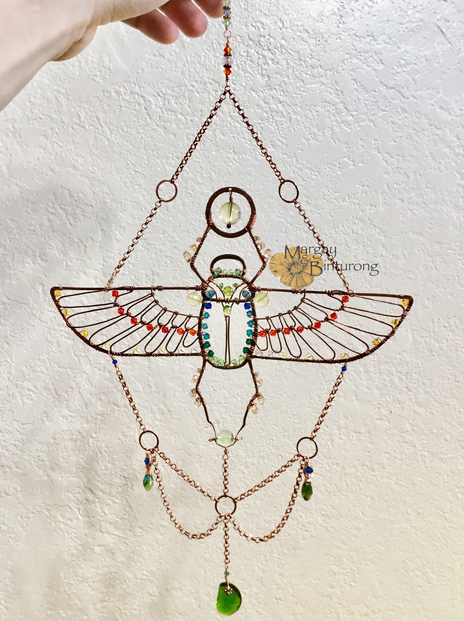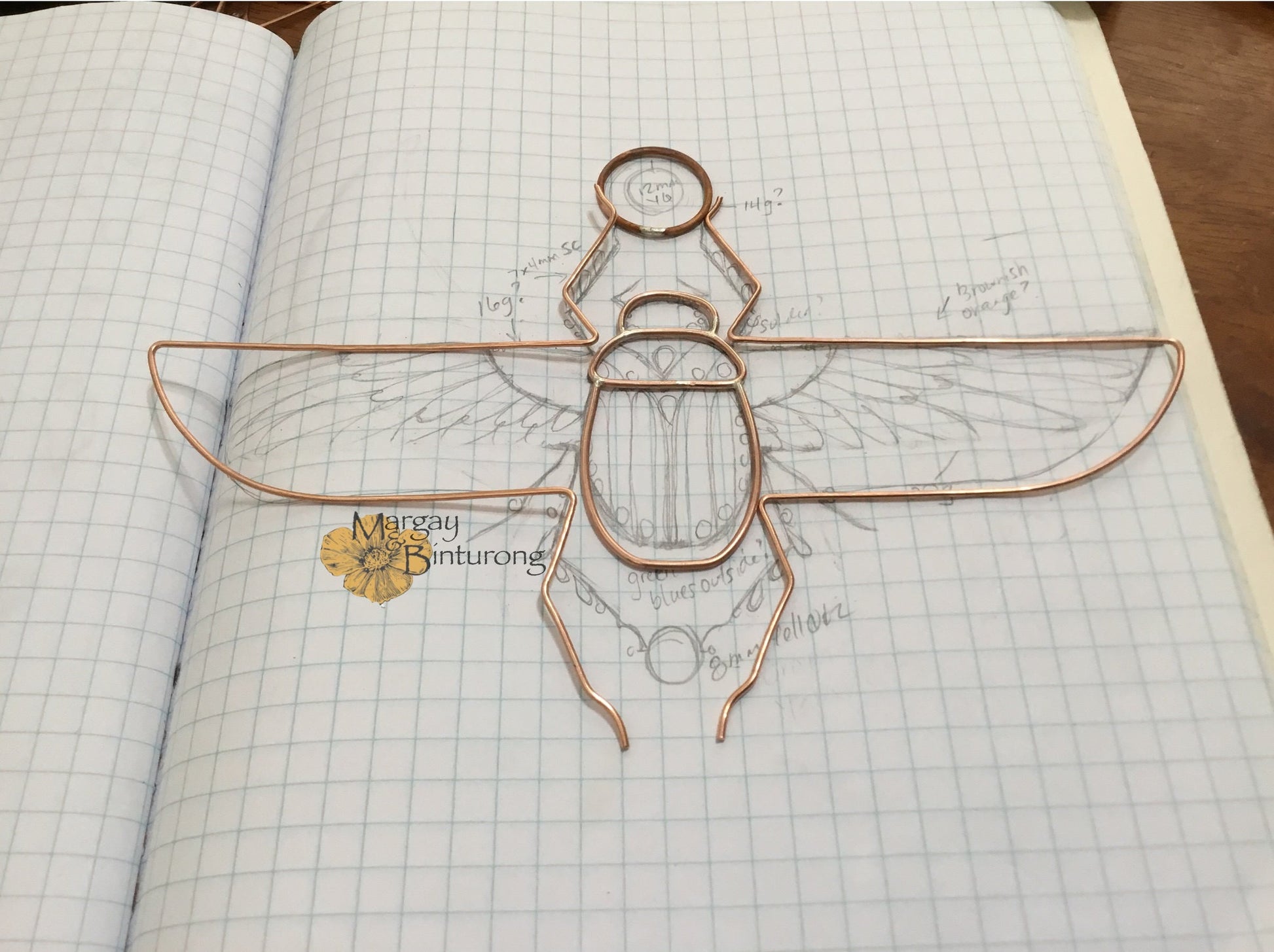 Every single aspect of this Egyptian Scarab Beetle was conceived, sketched on paper, designed, hand-formed from different gauges of solid Copper wire, hammered and wrapped together by me. It's my BABY! 😝