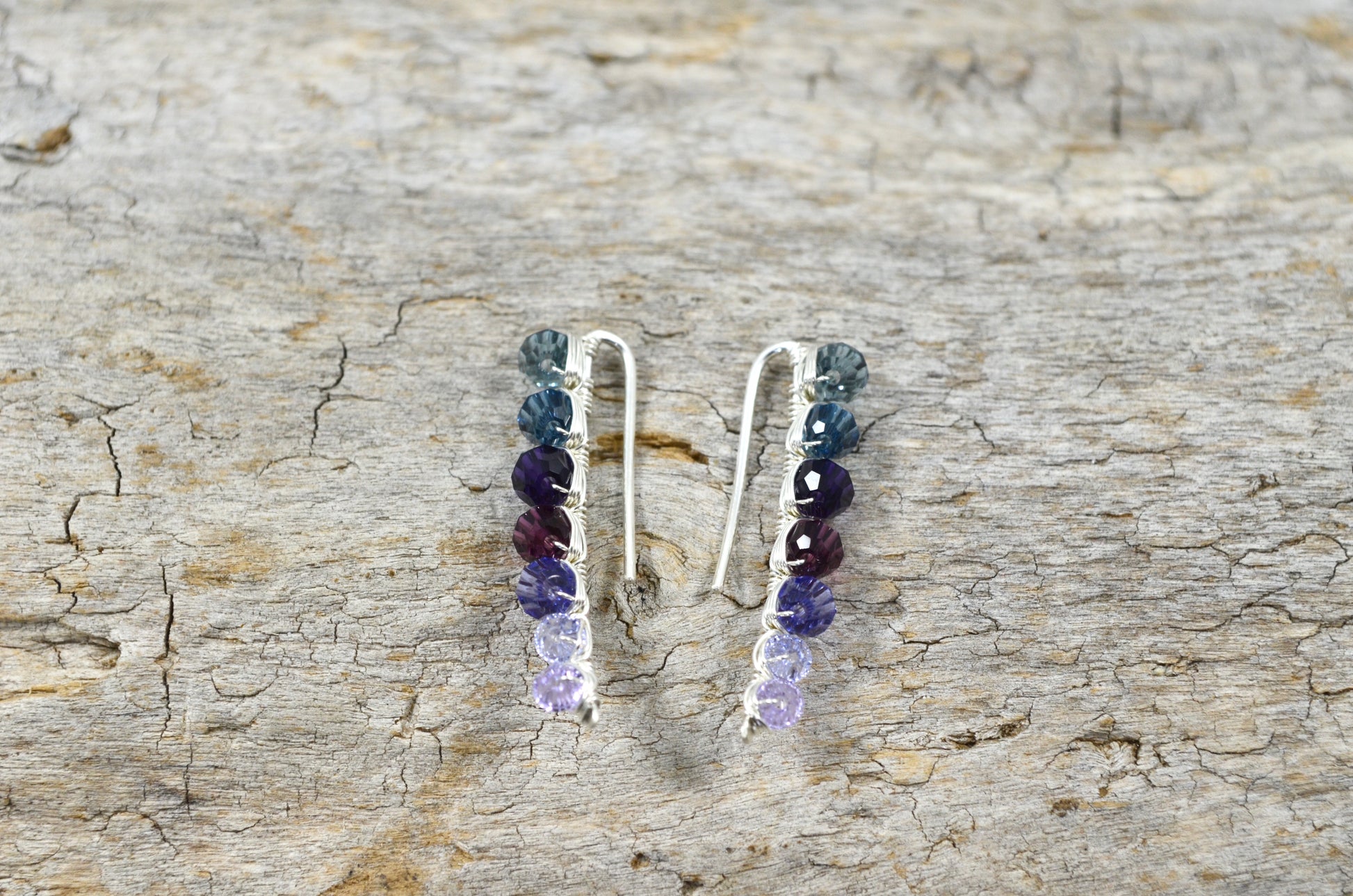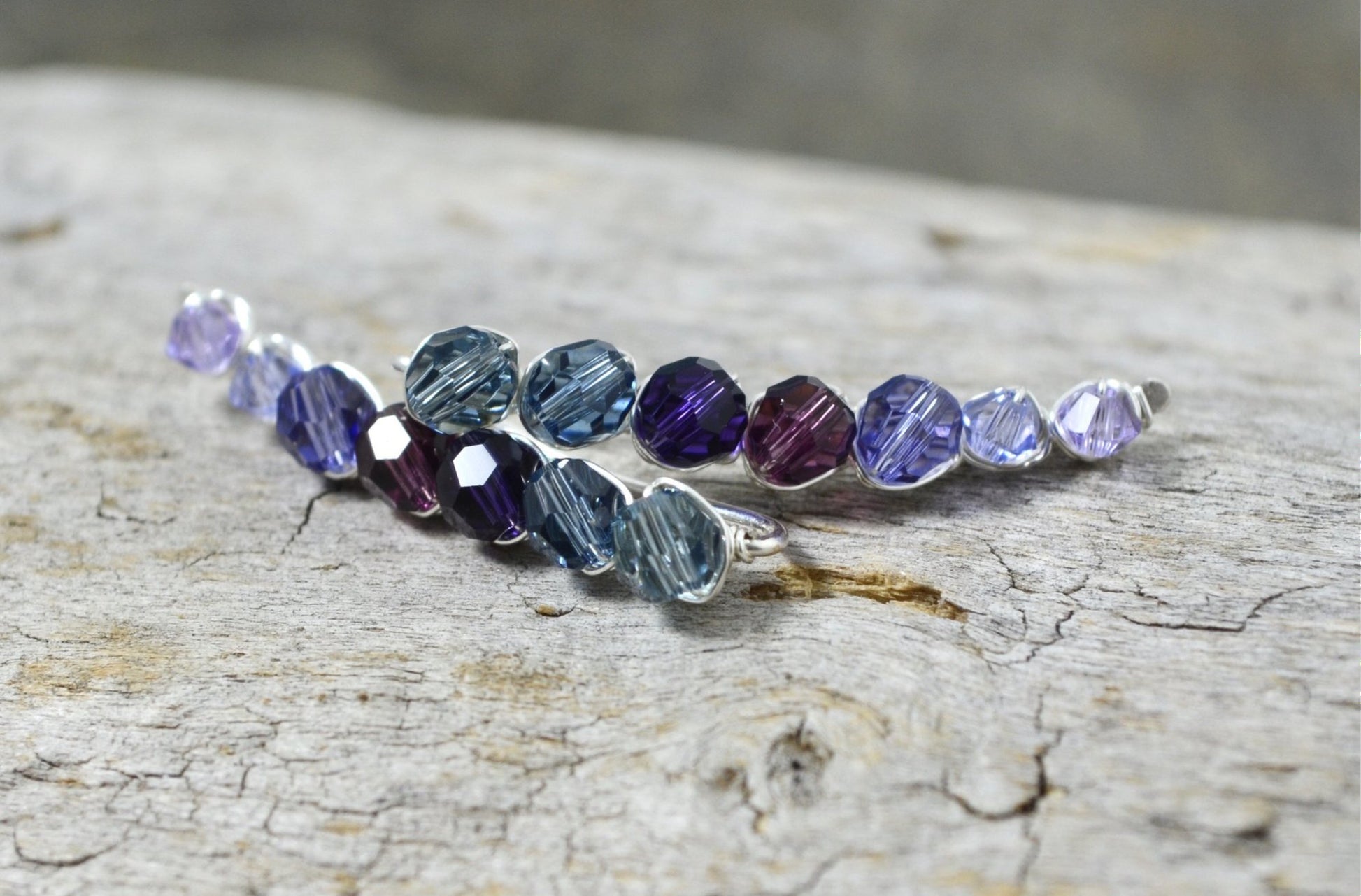 Purple Violet ombré Crystal Ear Climbers in Sterling Silver or 14k Gold Fill, ear crawler earrings