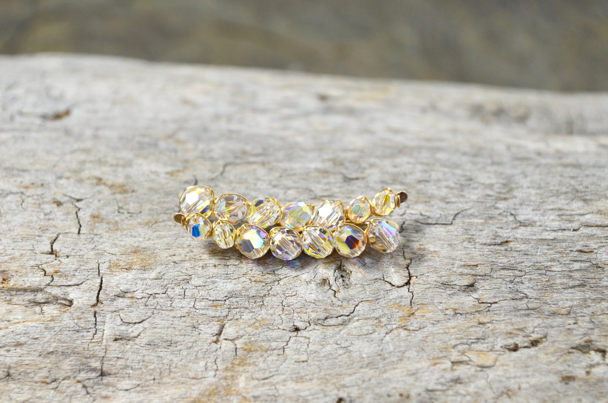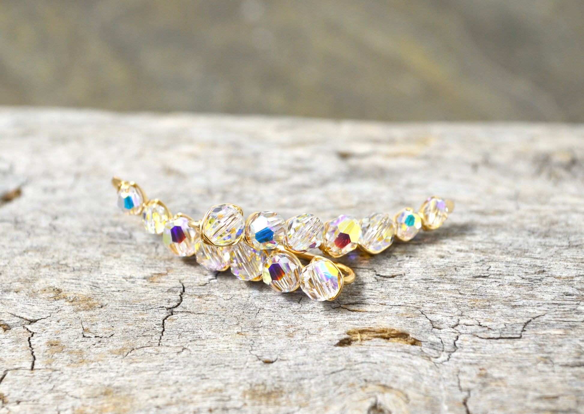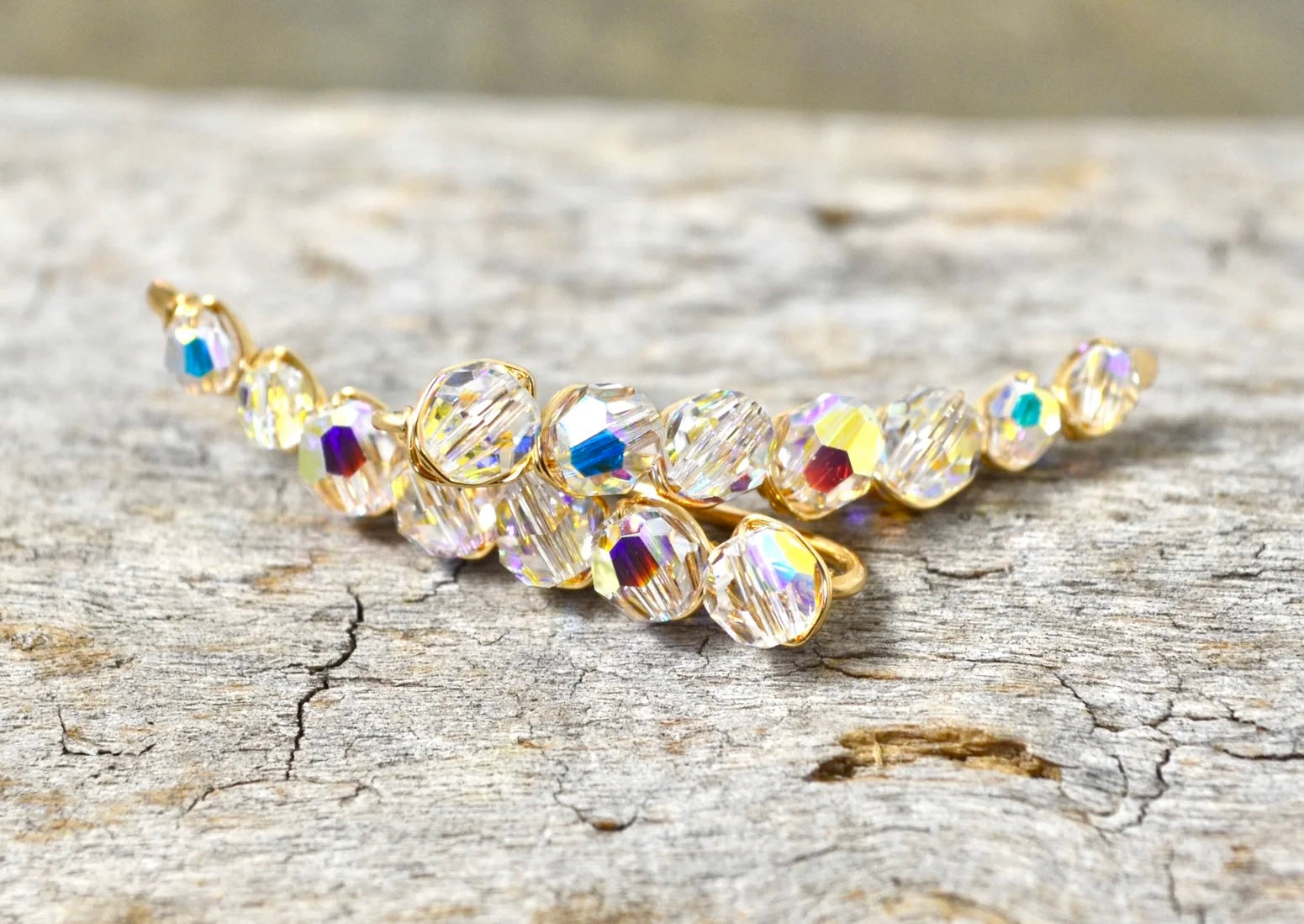 Ultra sparkly with multi-colored reflections of light, these beautiful Crystal prism Ear Climbers are neutral enough for everyday wear, or can really glam up a special occasion! White and gold are a classic combo that will add elegance to any occasion!