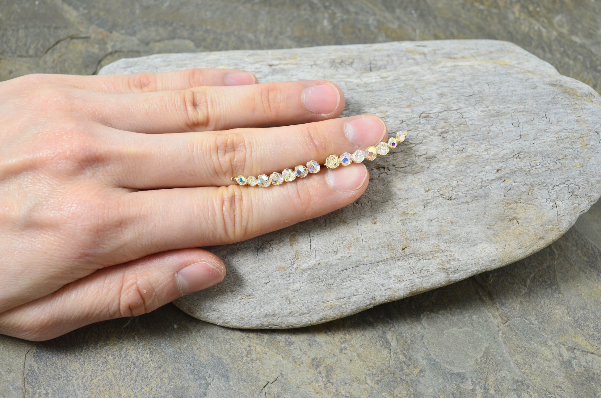 Rainbow Clear Crystal Ear Climbers in Sterling Silver or 14k Gold Fill, Crystal prism ear crawler earrings