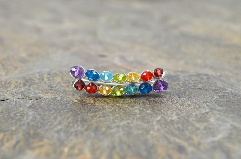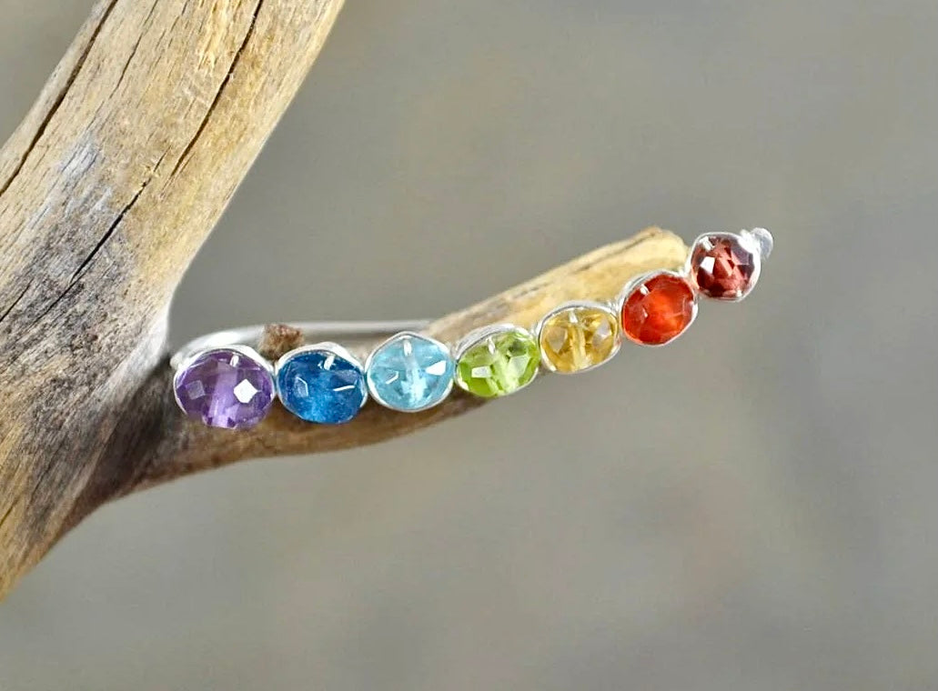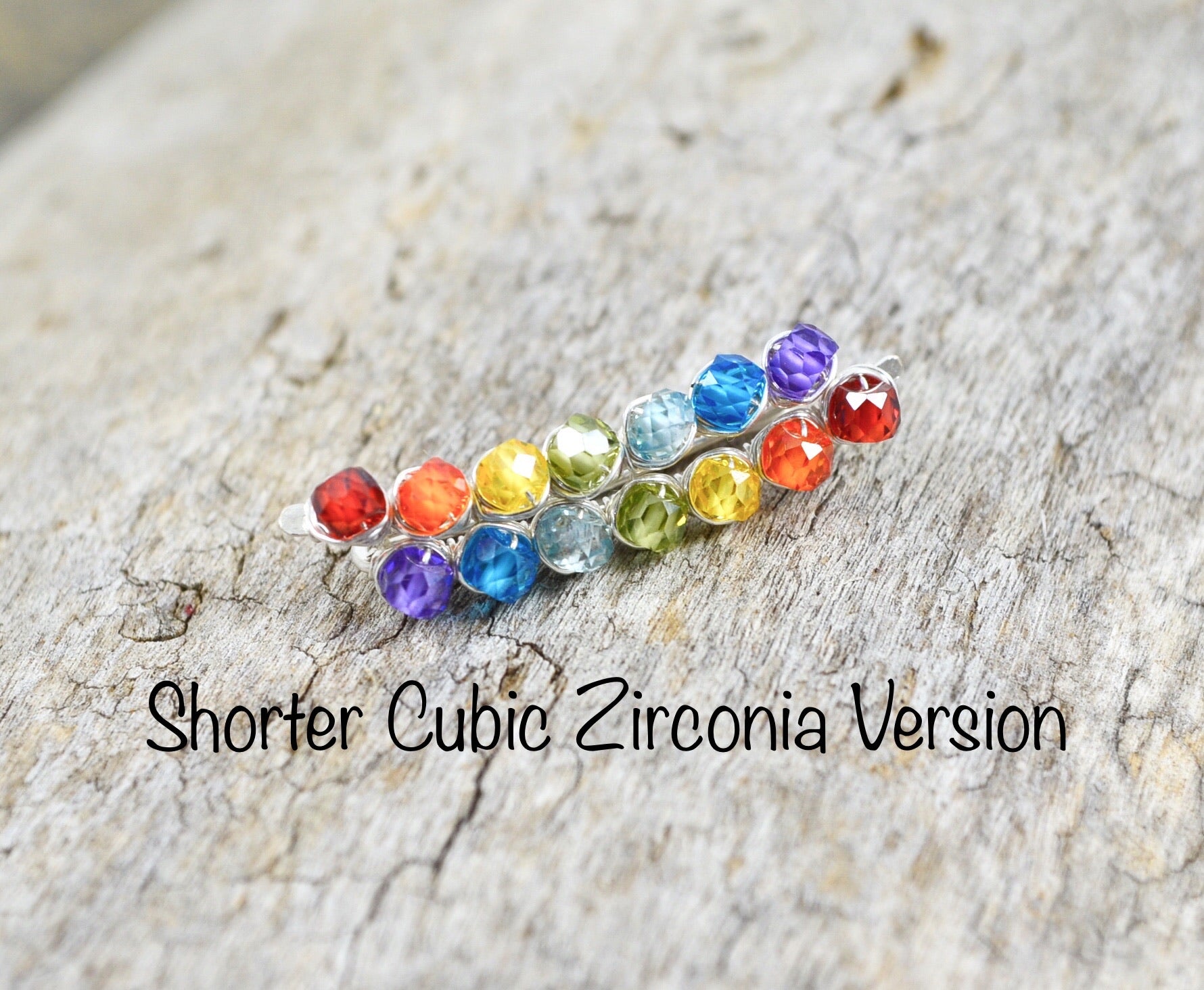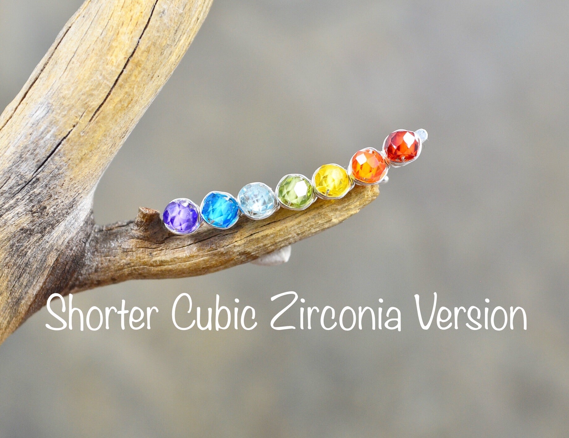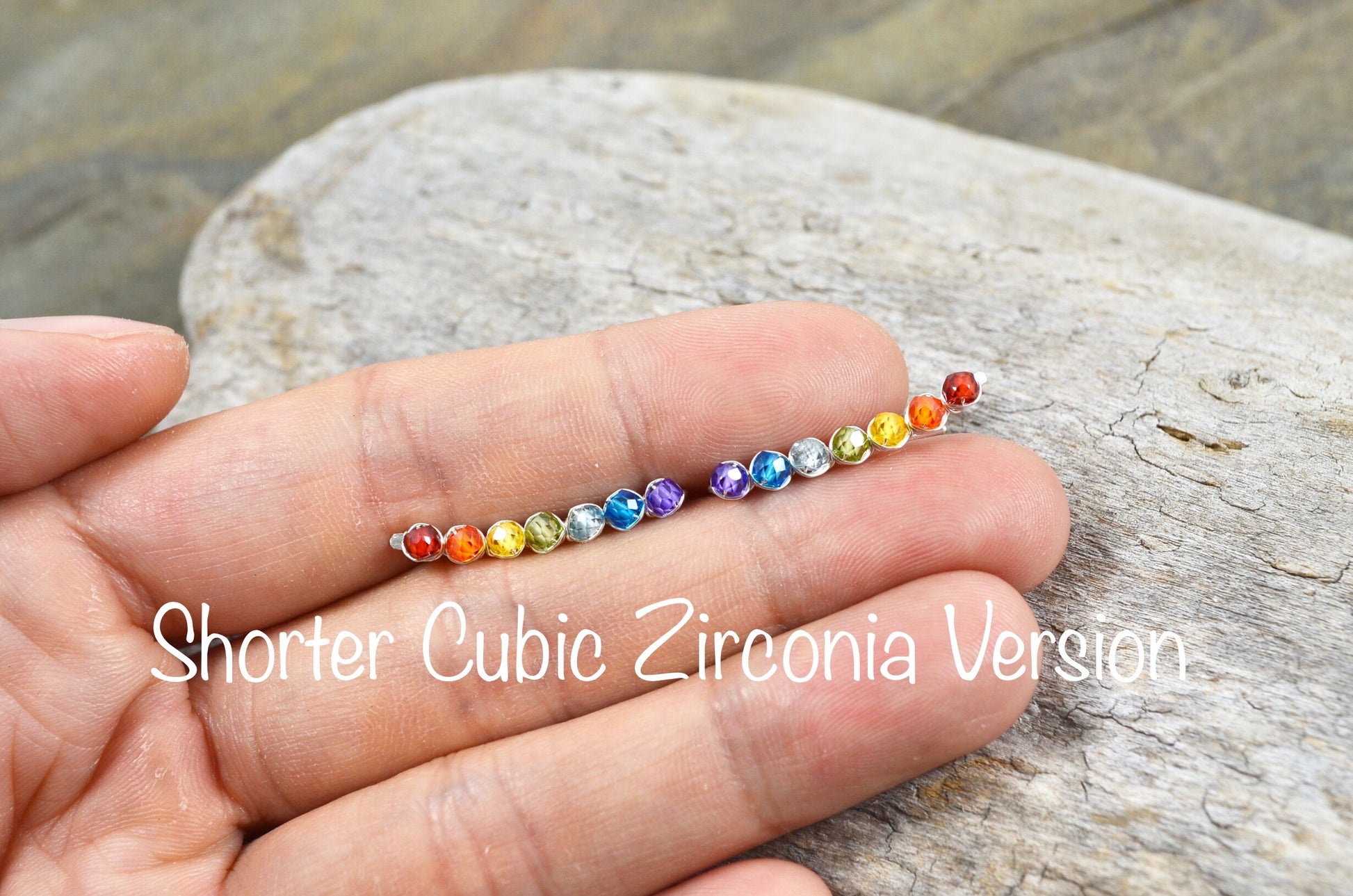 Beautiful and delicious little gems in all the colors of the rainbow! Gorgeous, colorful and sparkling with micro-facets, these ear climbers are sure to be attention-grabbers.
