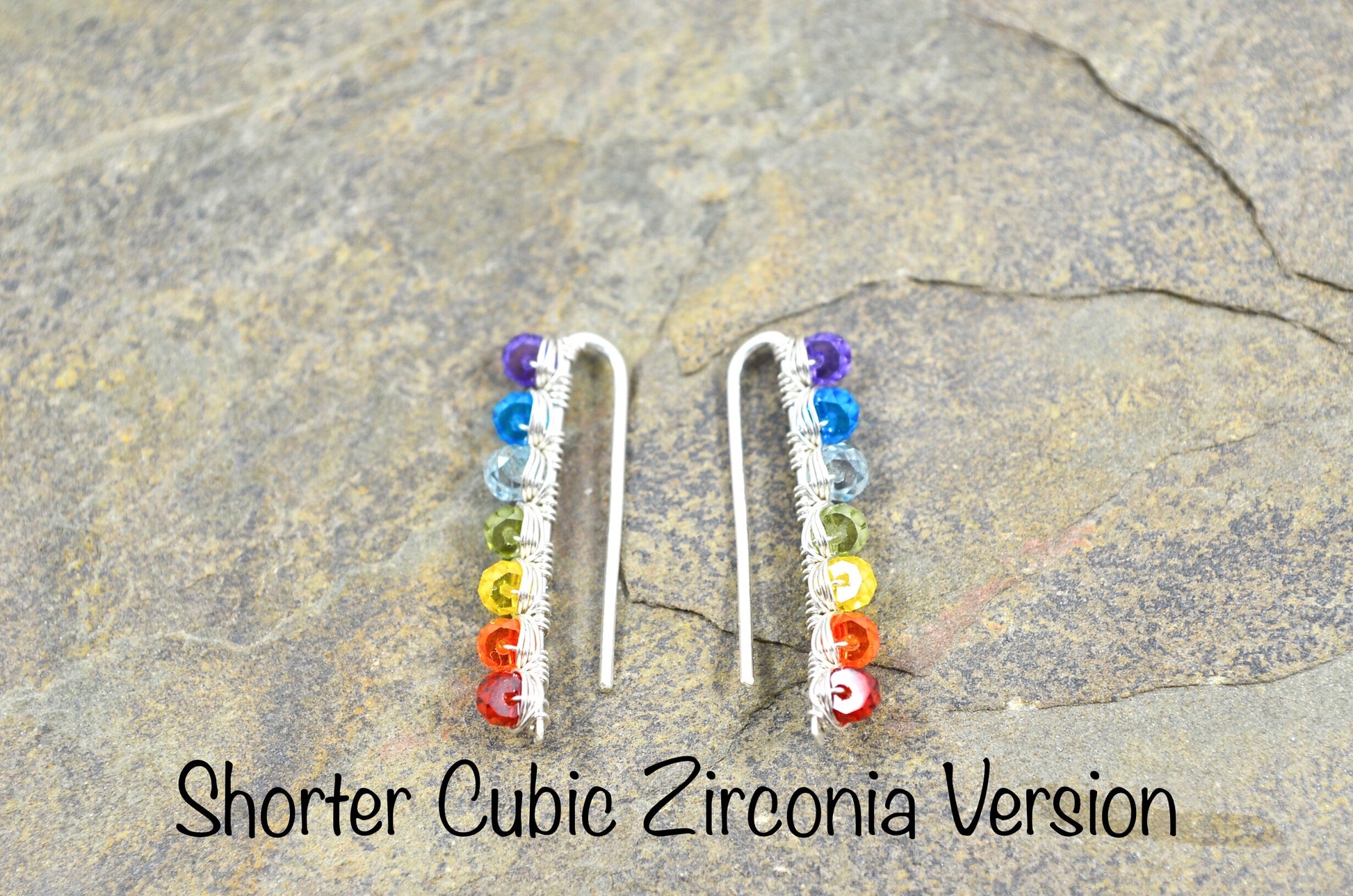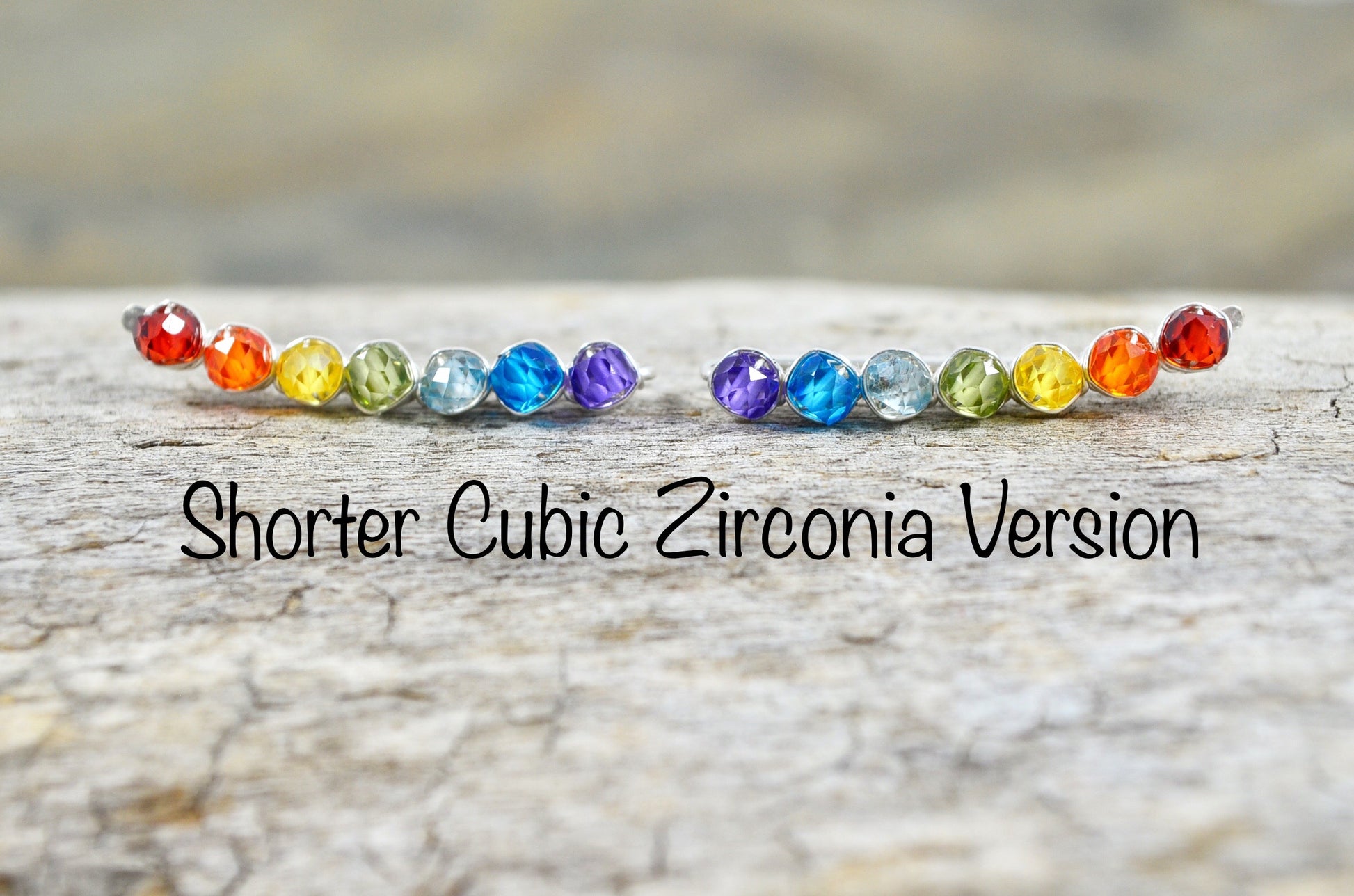 Rainbow Gemstone Ear Climbers in Sterling Silver or 14k Gold Fill, cubic zirconia pride lgbtq earrings