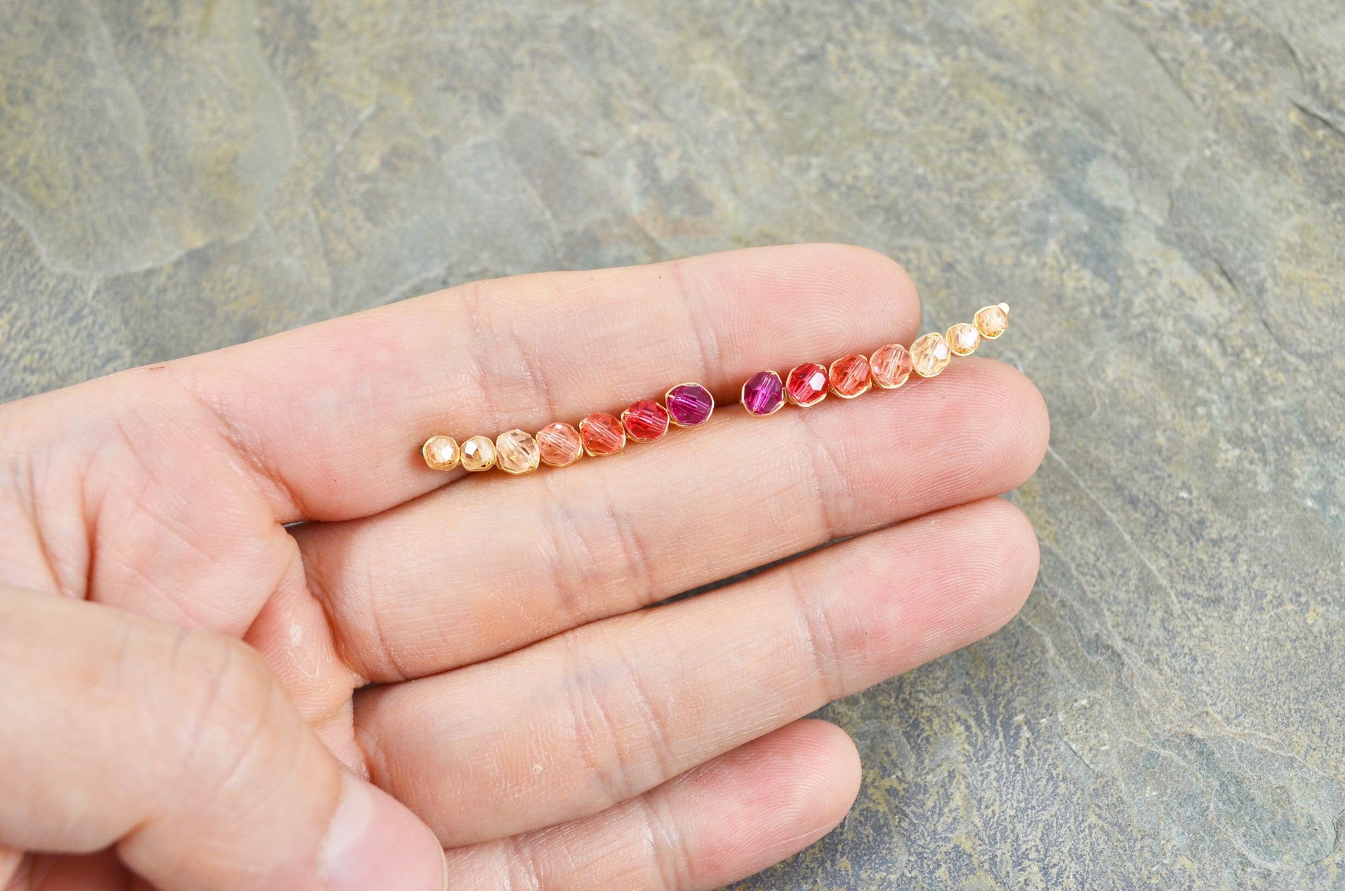 These juicy, glittering crystal ear climbers feature an ombré/gradient from deliciously vibrant ruby to soft, blush champagne. I was definitely inspired by one of my favorite fruits— pink grapefruit! There is something so soothing and mesmerizing about gradient colors, and these are a perfect twist of citrus for all you July birthstone babes! 😍💎💚
