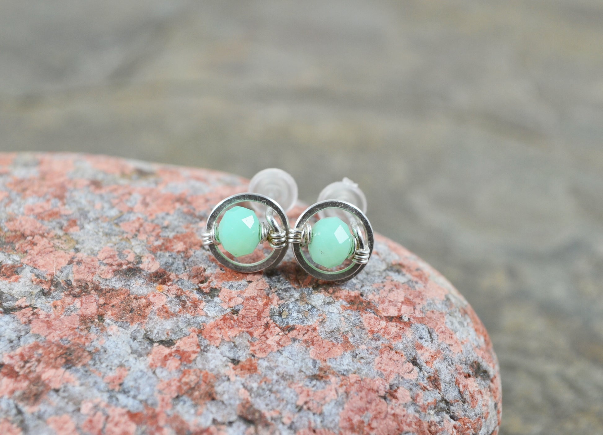 Chrysoprase Gemstone Stud earrings in Sterling Silver or 14k Gold Filled