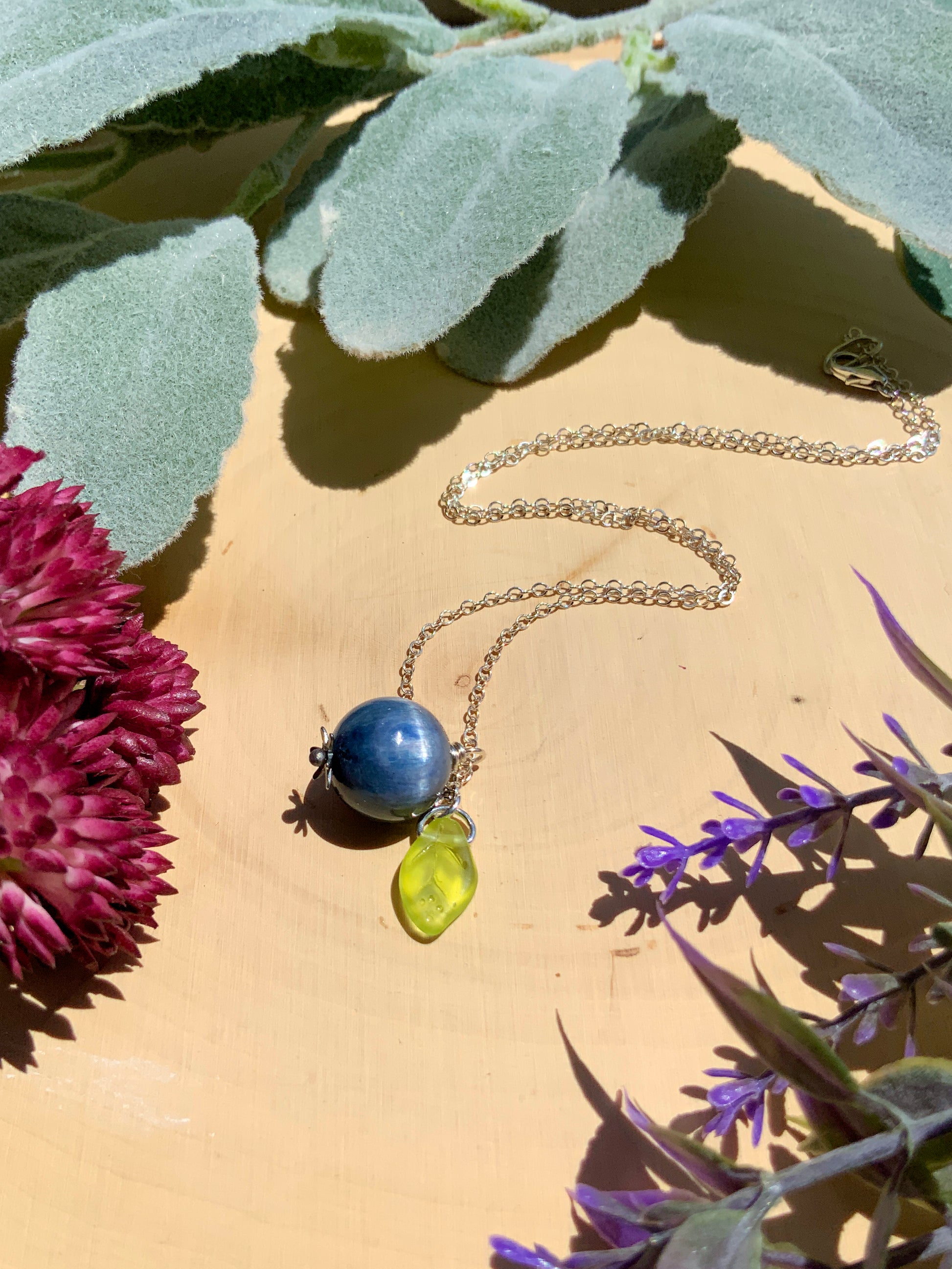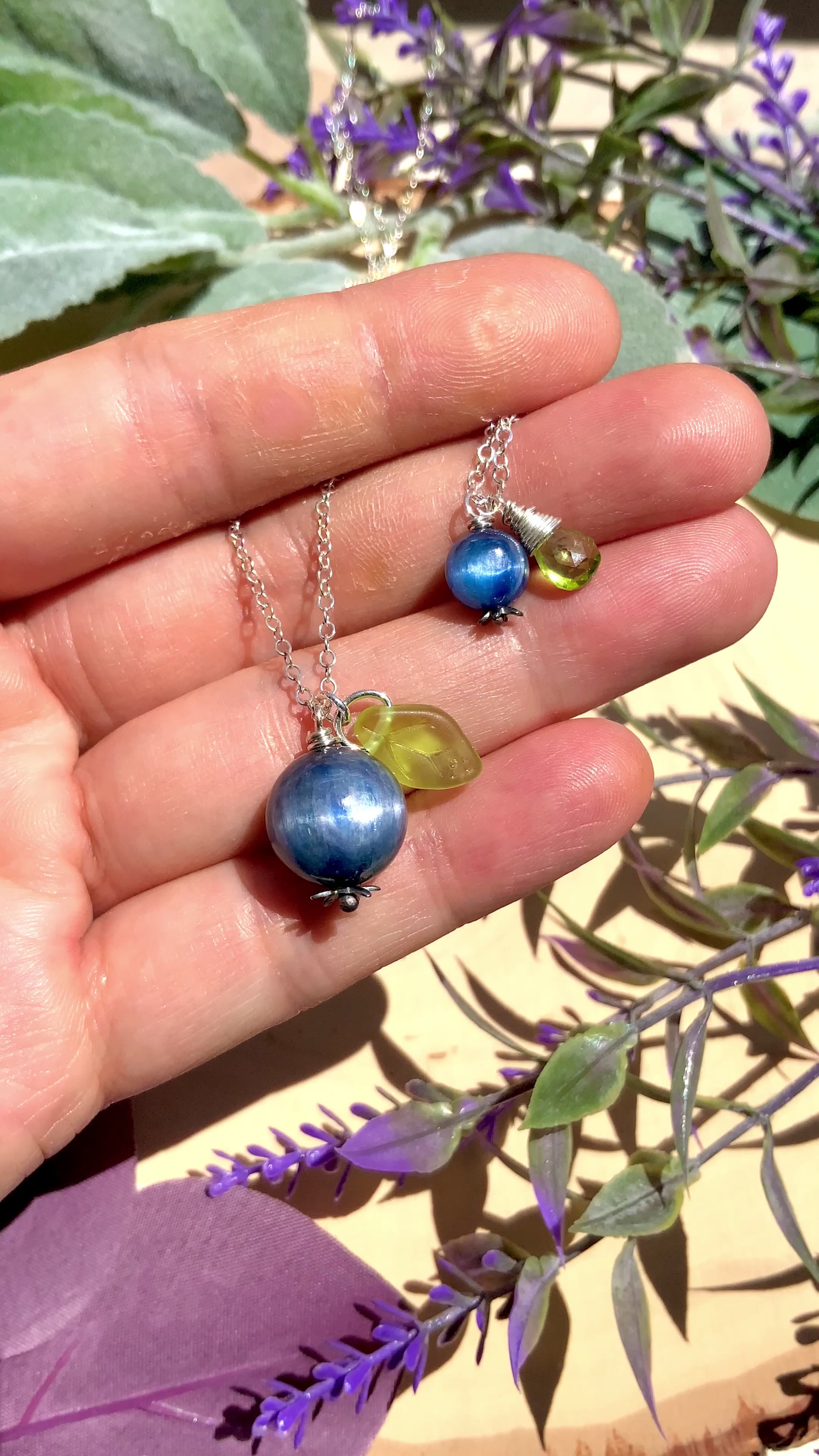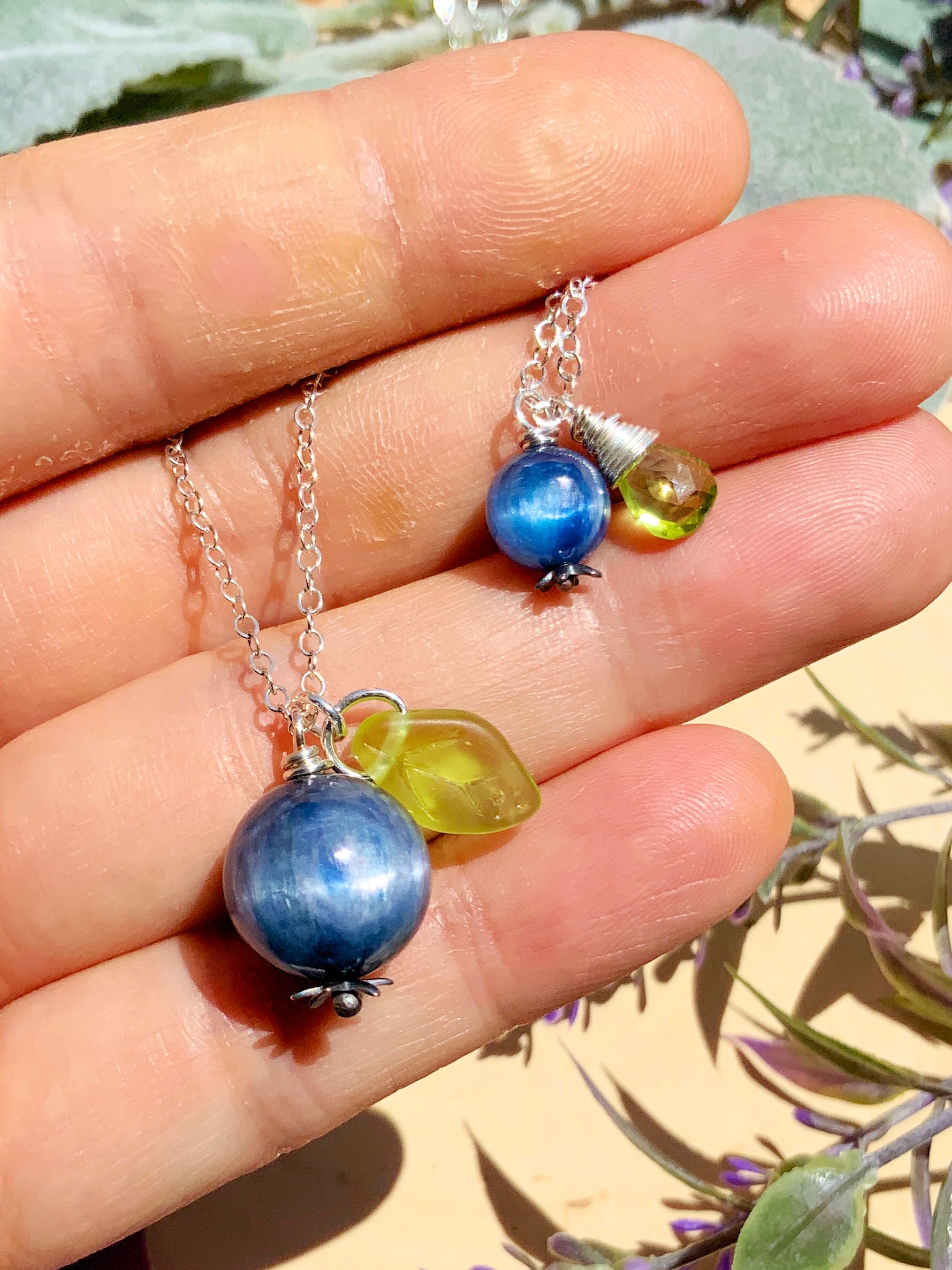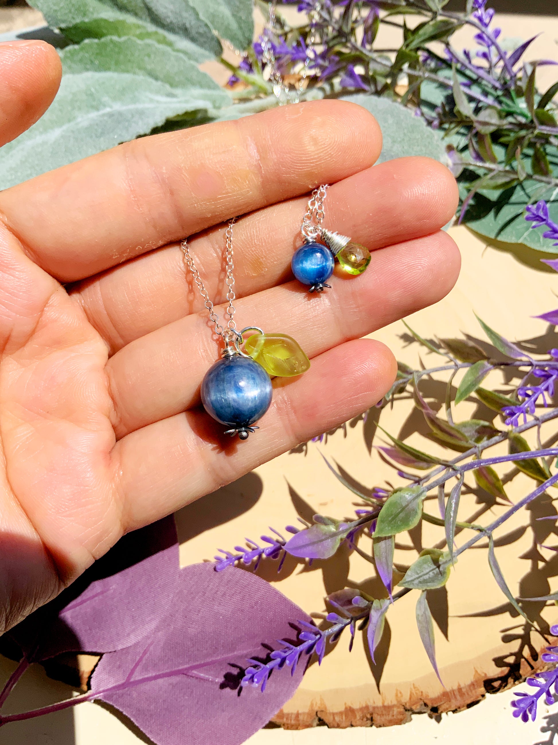 Kyanite Blueberry Necklace~ Sterling Silver 14k Gold-Filled Blue Gemstone Fruit Jewelry