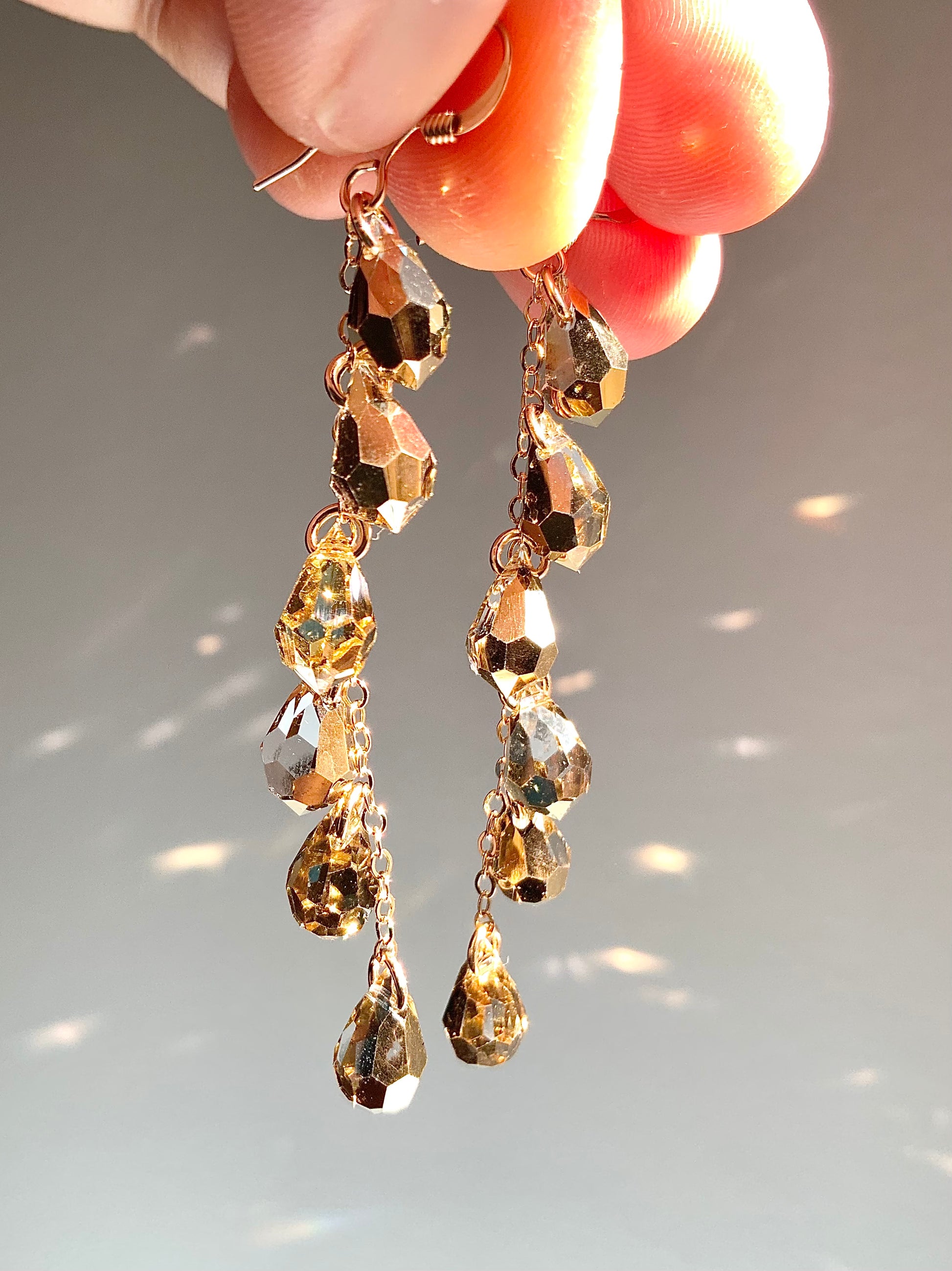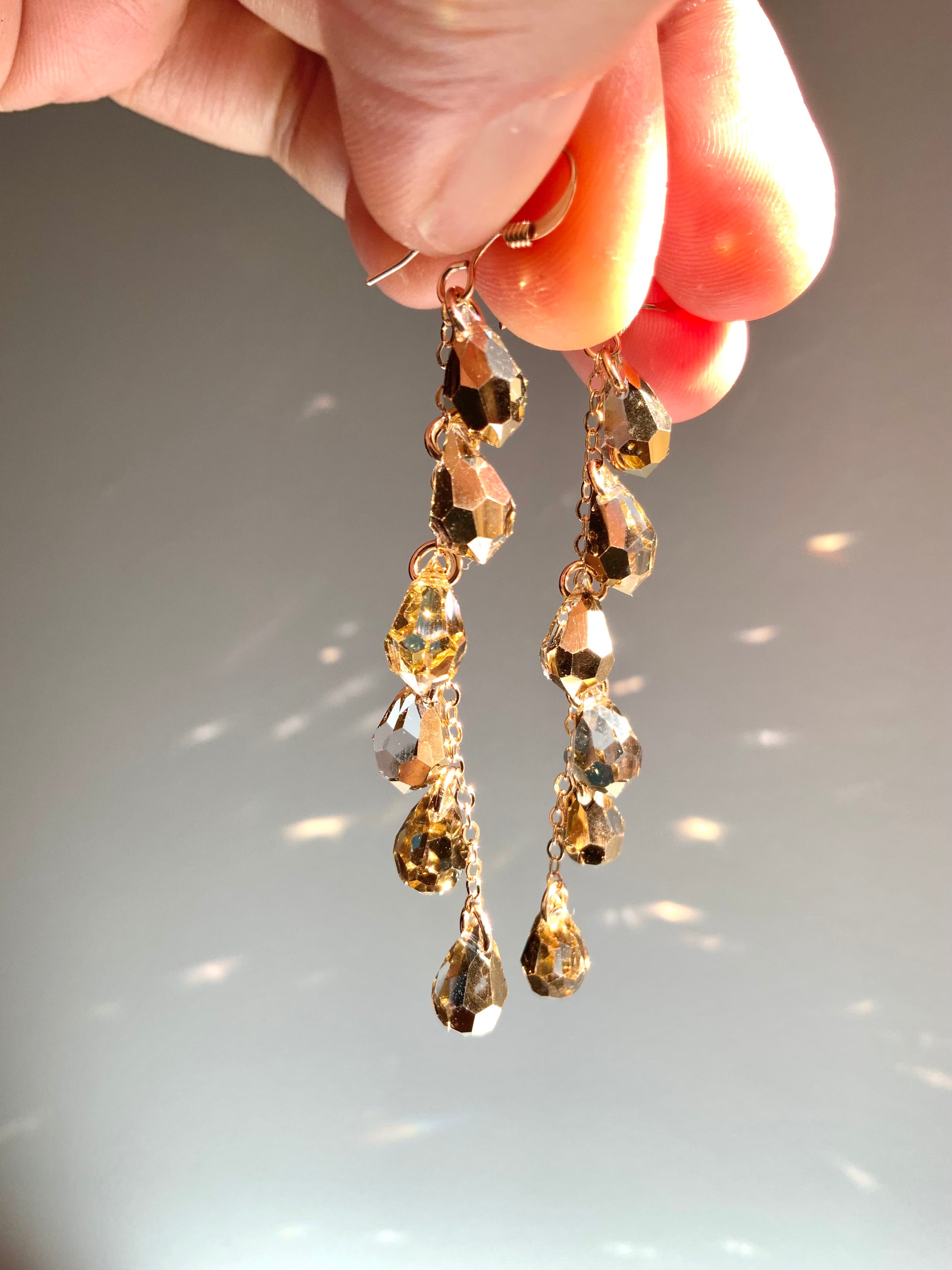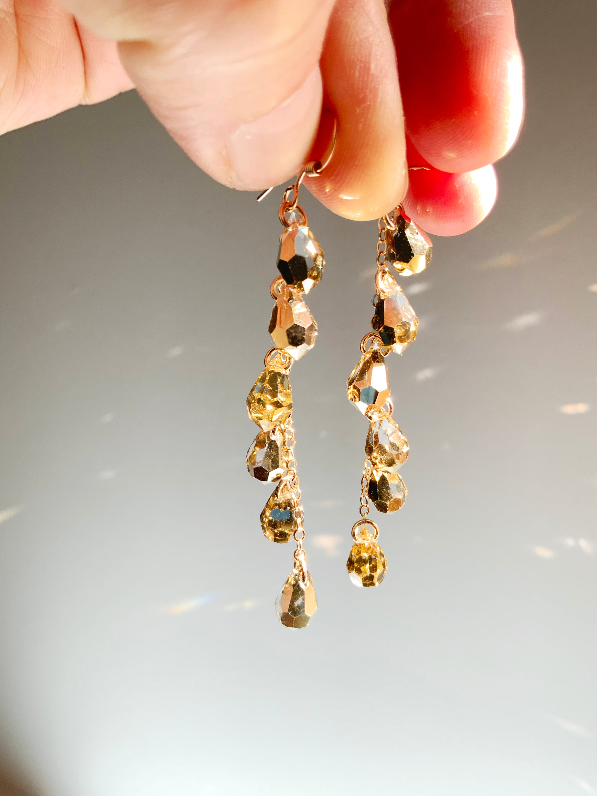 "Liquid Gold" ~ Luxe Crystal Waterfall earrings with Rare Metallic Gold Crystal, Sterling Silver or 14k Gold-Filled