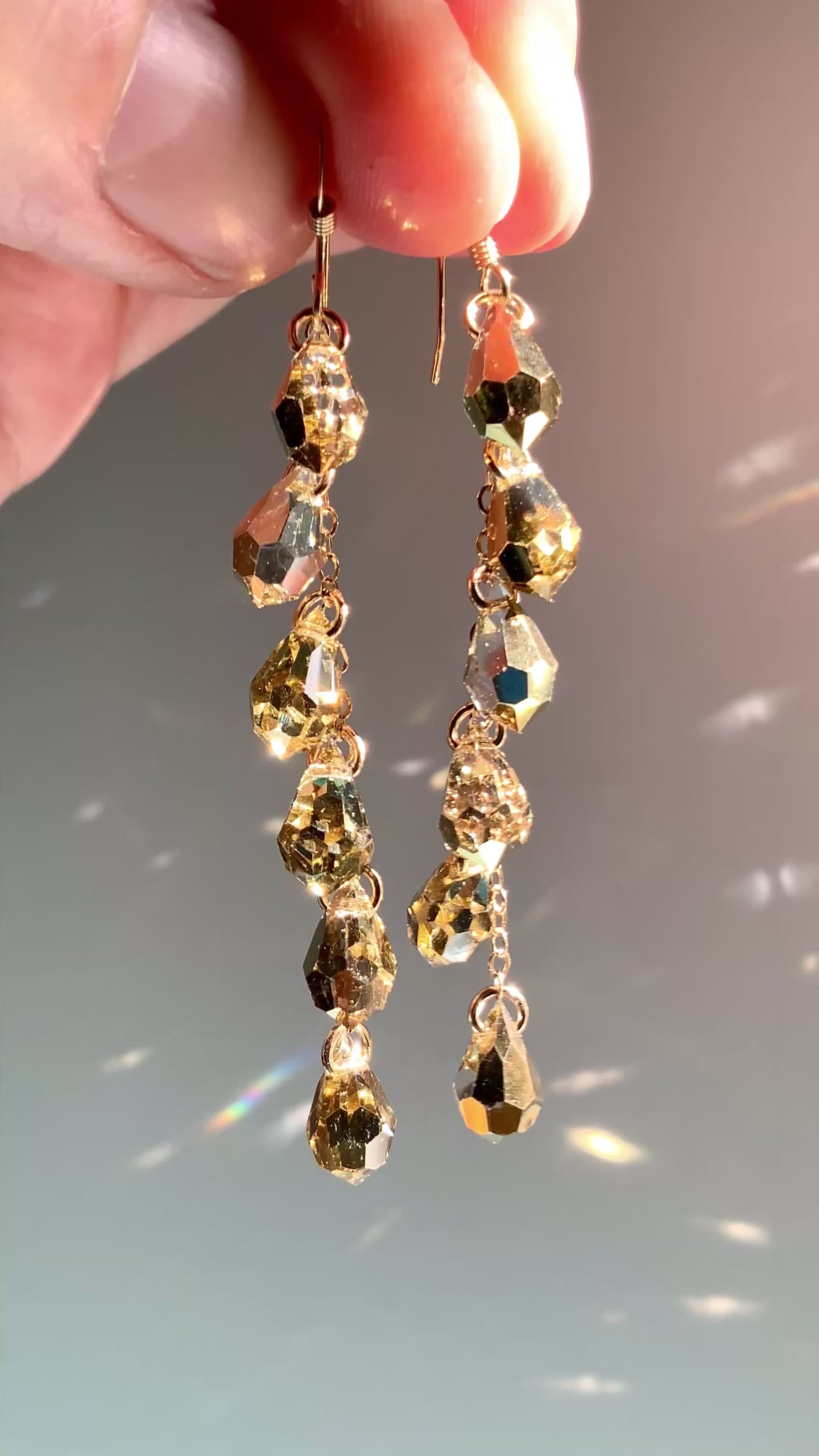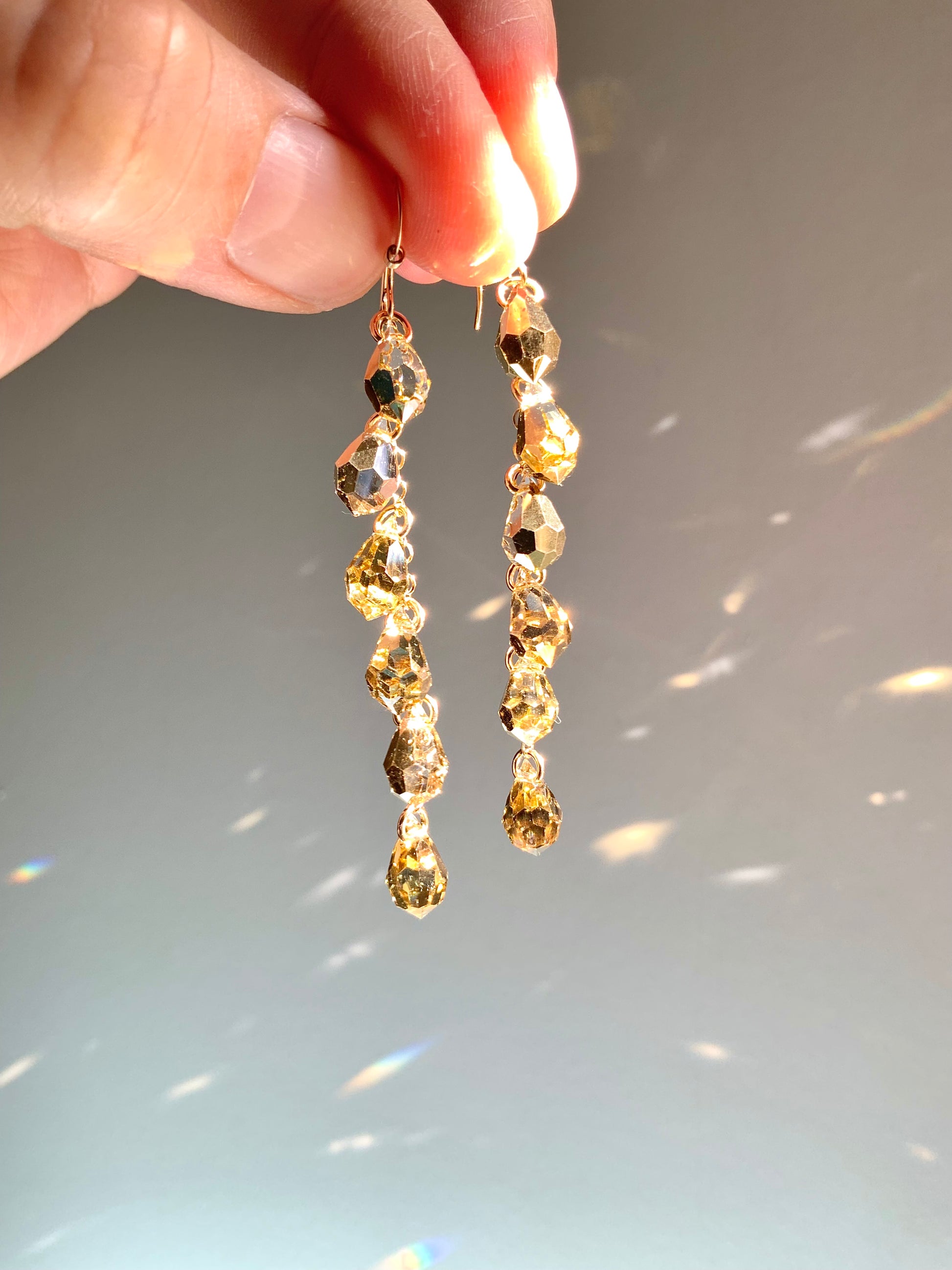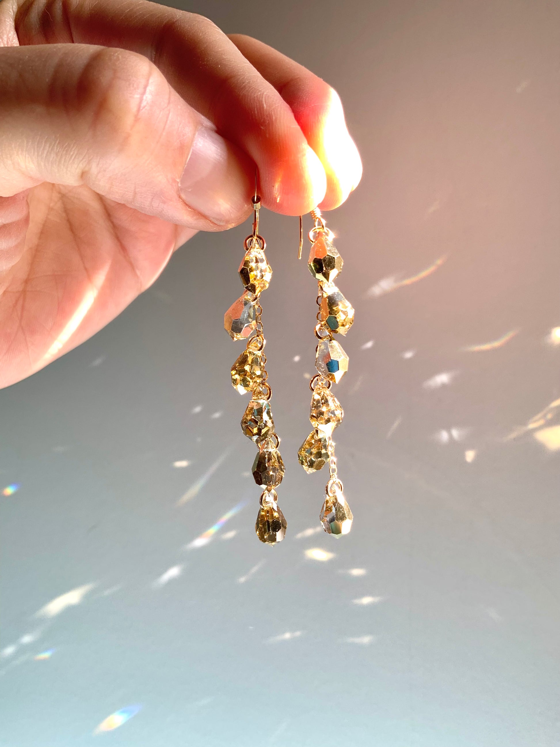 "Liquid Gold" ~ Luxe Crystal Waterfall earrings with Rare Metallic Gold Crystal, Sterling Silver or 14k Gold-Filled