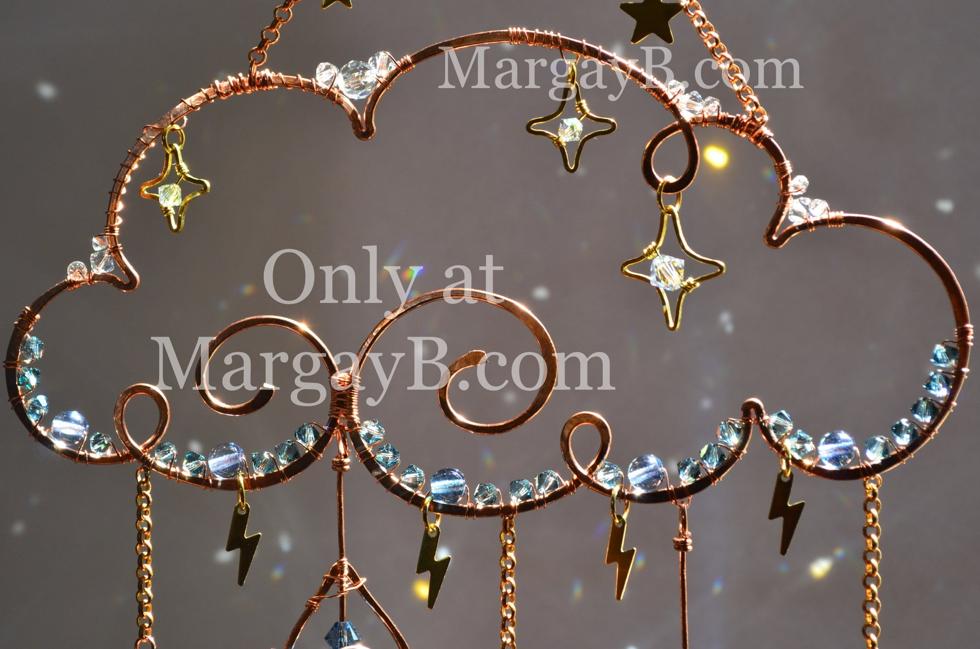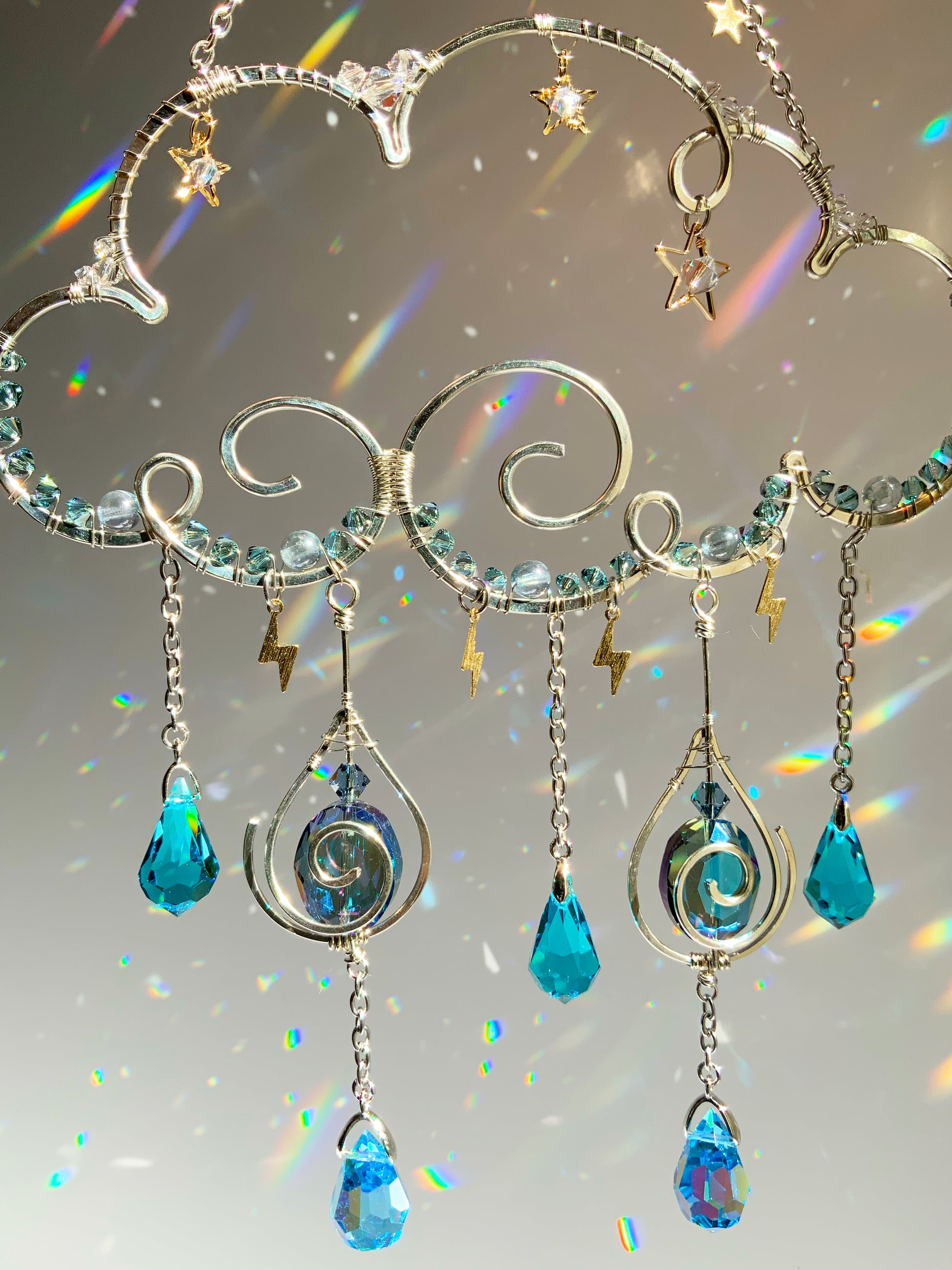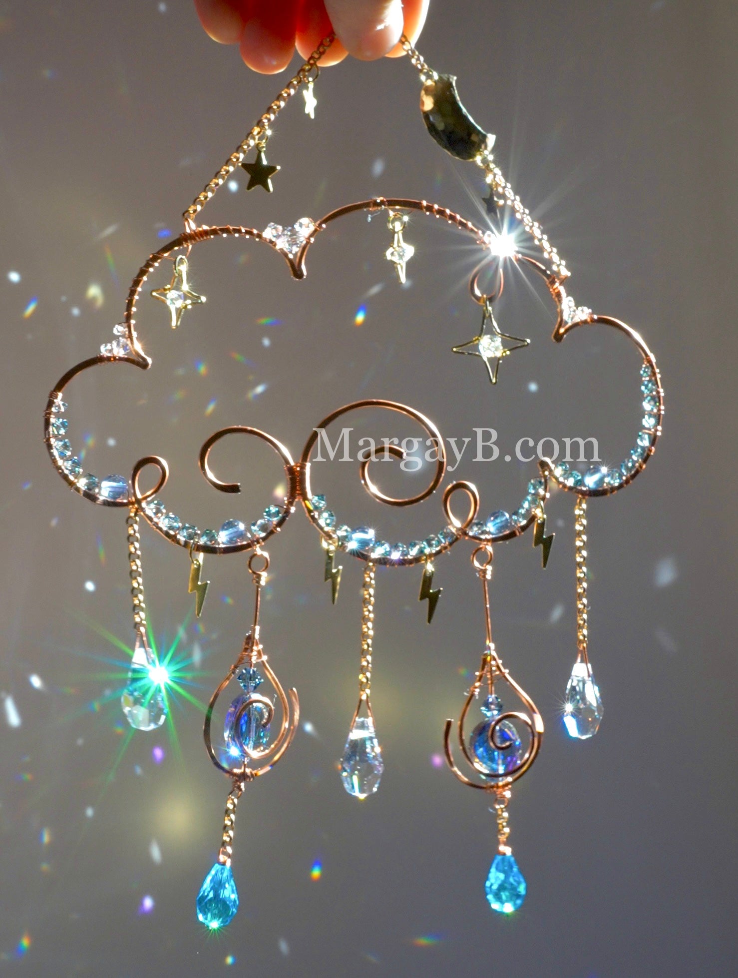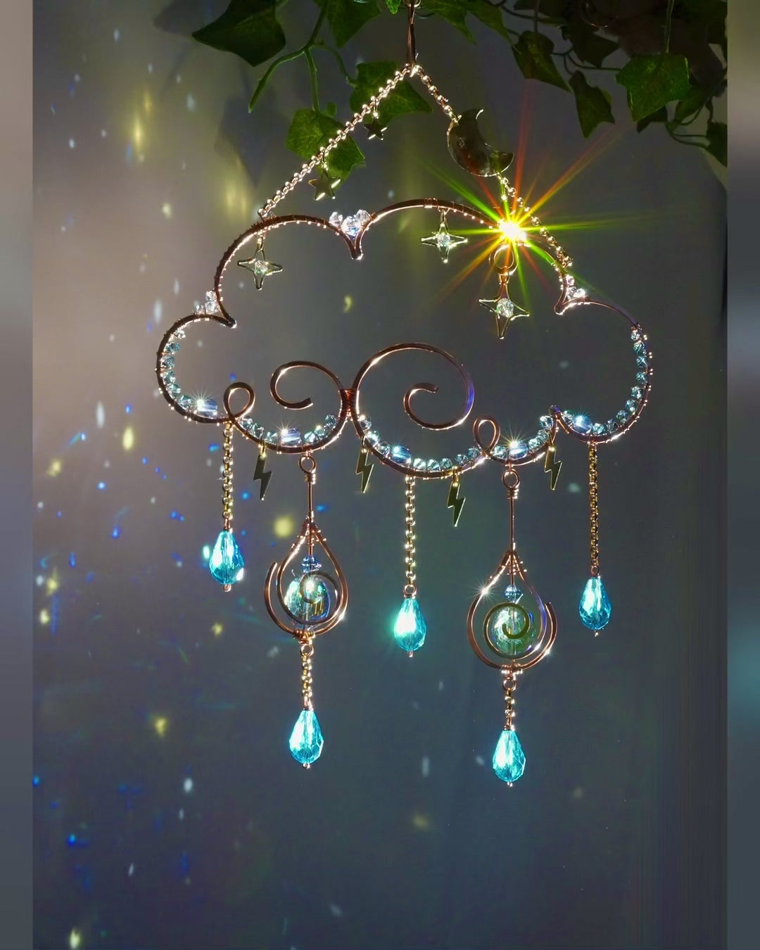 I promise you will brighten your every day, rain or shine, just to hang this raincloud suncatcher in your window or anywhere in your home. Indoors, direct sunlight dances through the wire wrapped crystals to dazzle your walls with tiny rainbows. So incredibly sparkly! 😍 Fantastic as gifts or just as a treat for yourself so you can smile every time you glance at it sparkling in the sun. ☺️